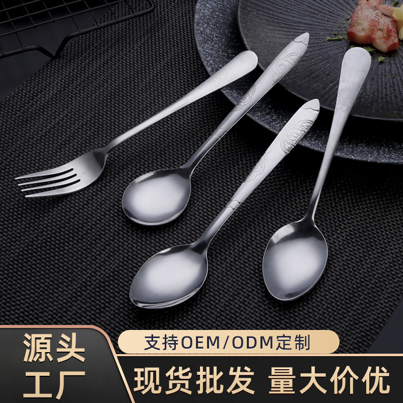 国境を越えて人気のステンレス製カトラリーセット、軽奢なレトロ柄のステーキナイフ・フォーク、デザートスプーン、フルーツフォーク