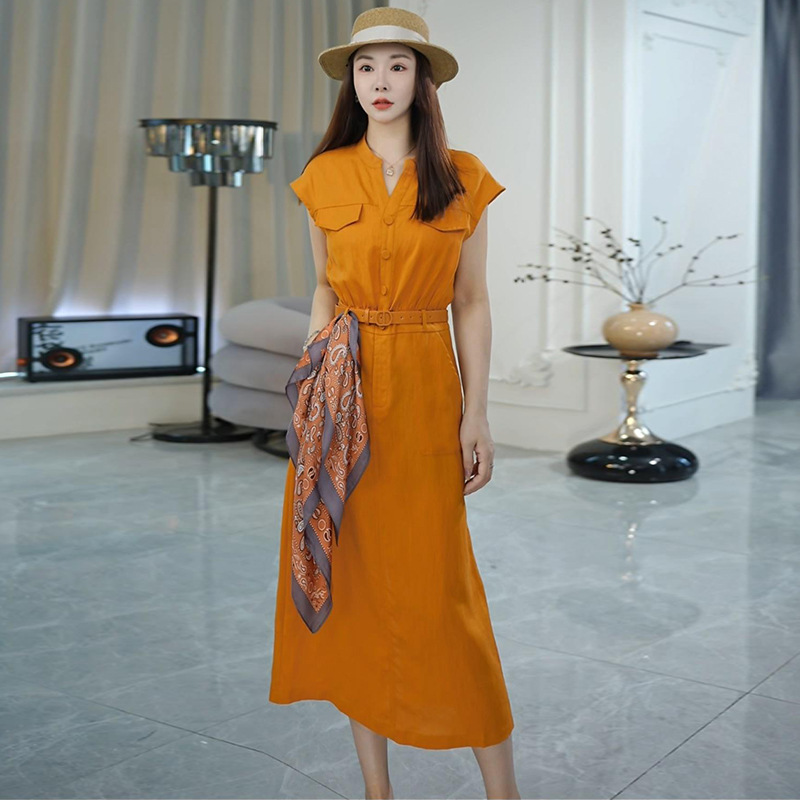 夕日のオレンジ,ネイビーブルー,白,スカーフ