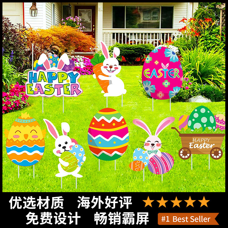 跨境热销复活节地插牌定制草坪节日派对标志防水防晒pp庭院插牌