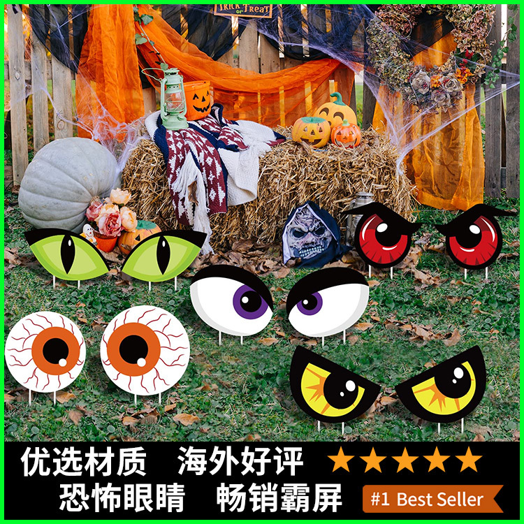 2025年新作ハロウィンガーデンデコレーション、様々な怖い目をしたハロウィンパーティーをテーマにした屋外用ヤードサイン