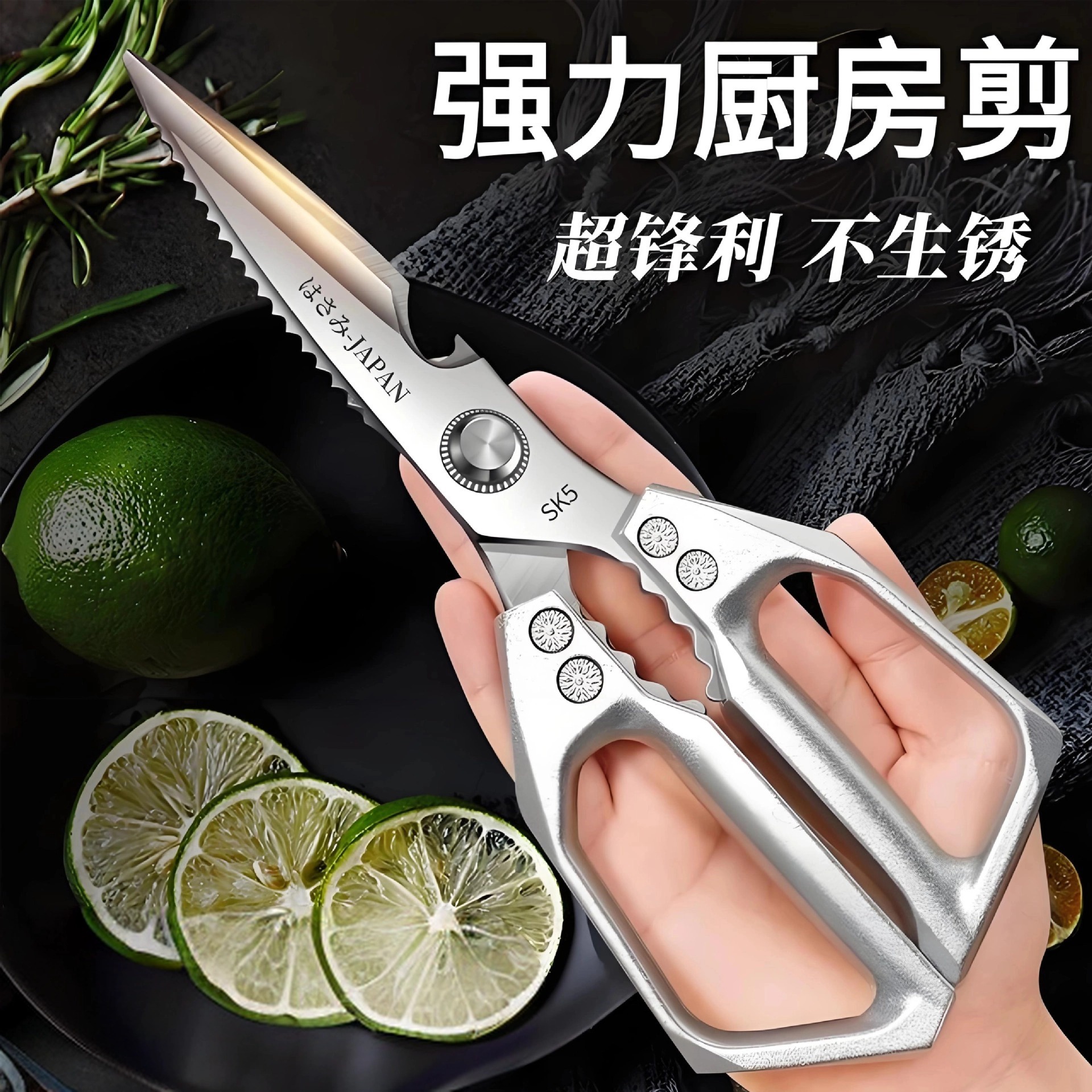 不锈钢厨房专用剪刀 家用SK5多功能鸡骨剪杀鱼刮鳞剪骨锋利食物剪