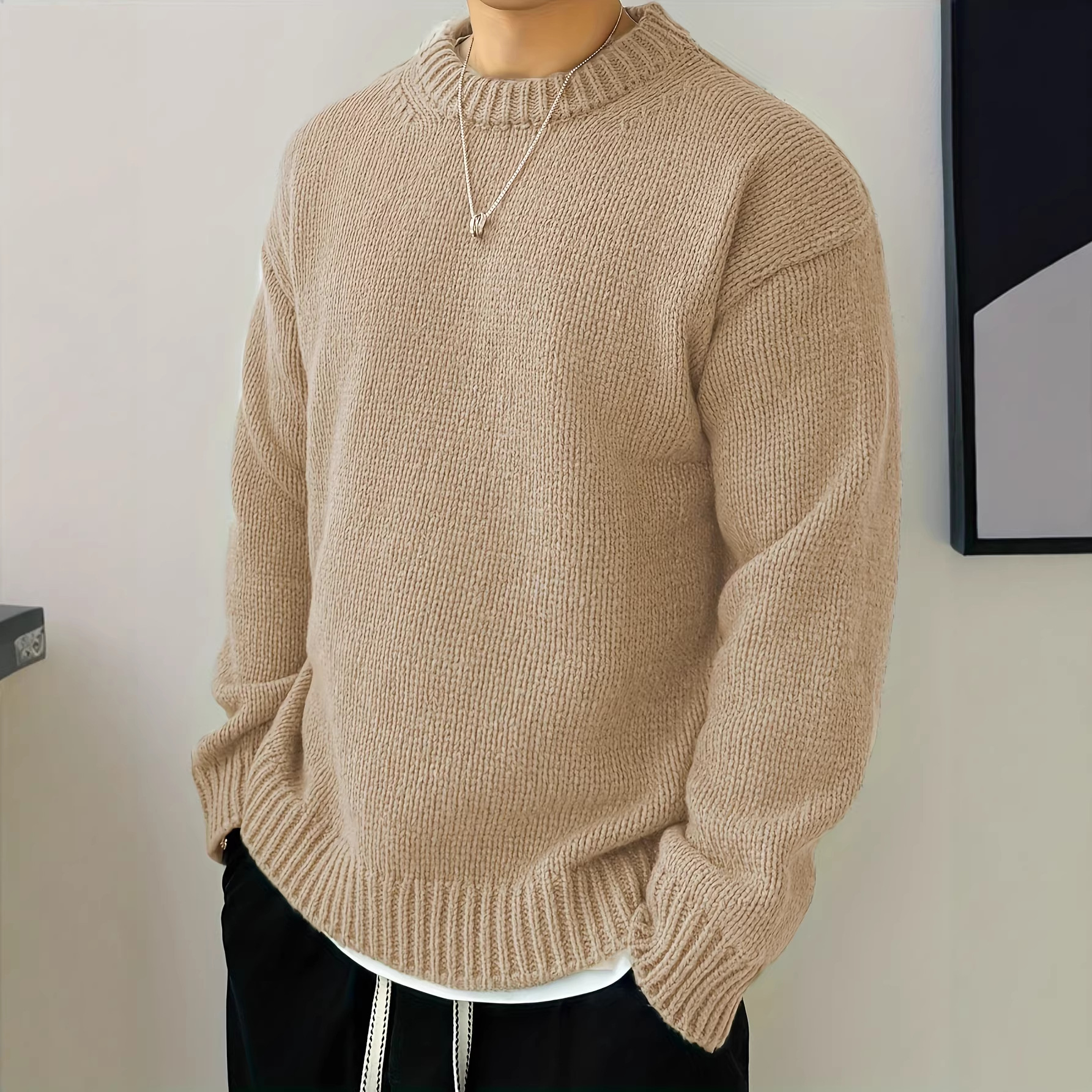 2025 新しいクロスボーダーヨーロッパとアメリカのメンズソリッドカラーニットラウンドネックプルオーバーソフト