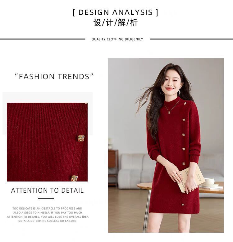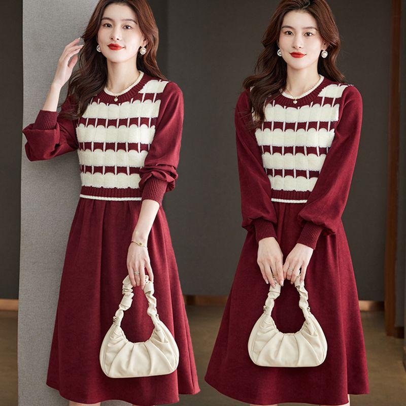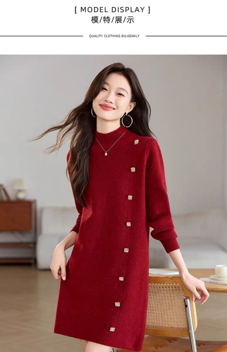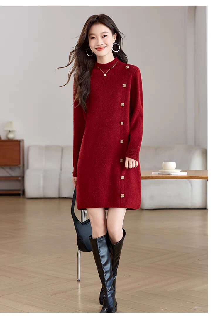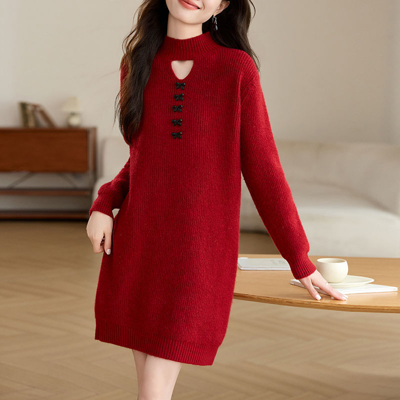 秋冬の新型膝を越えた長いタイプの赤いワンピース