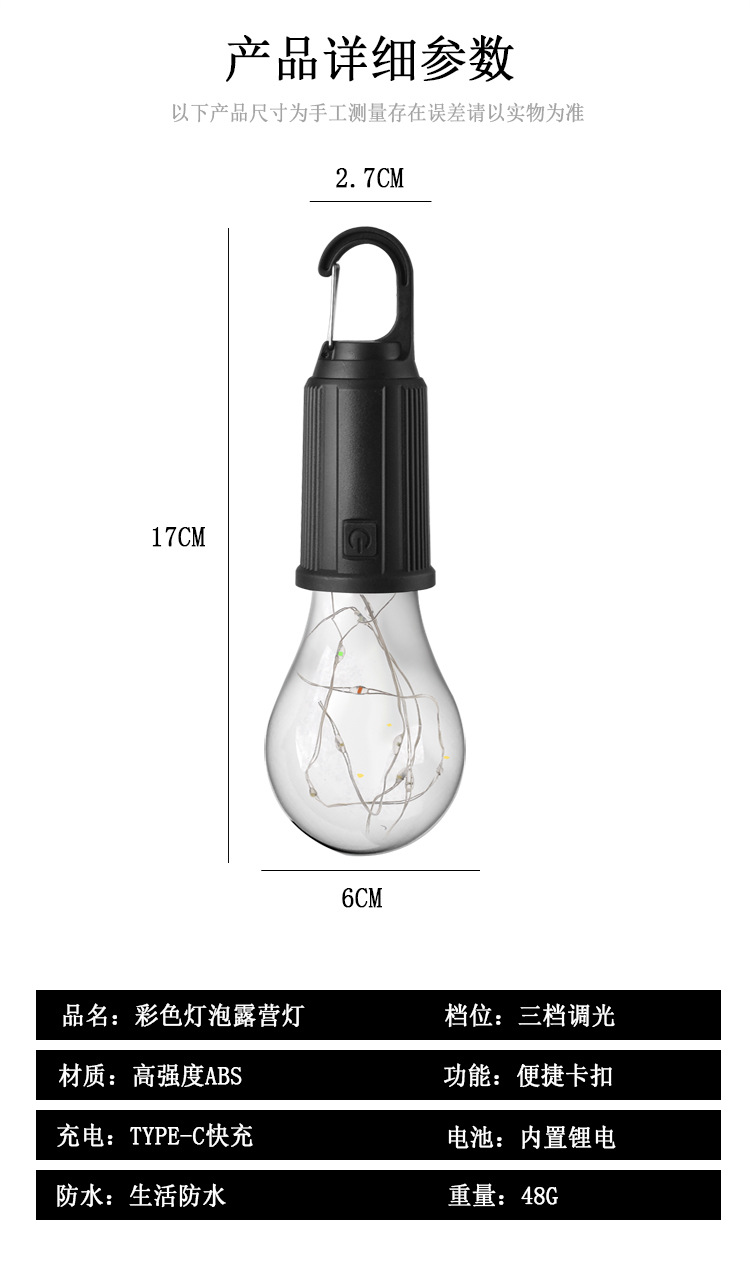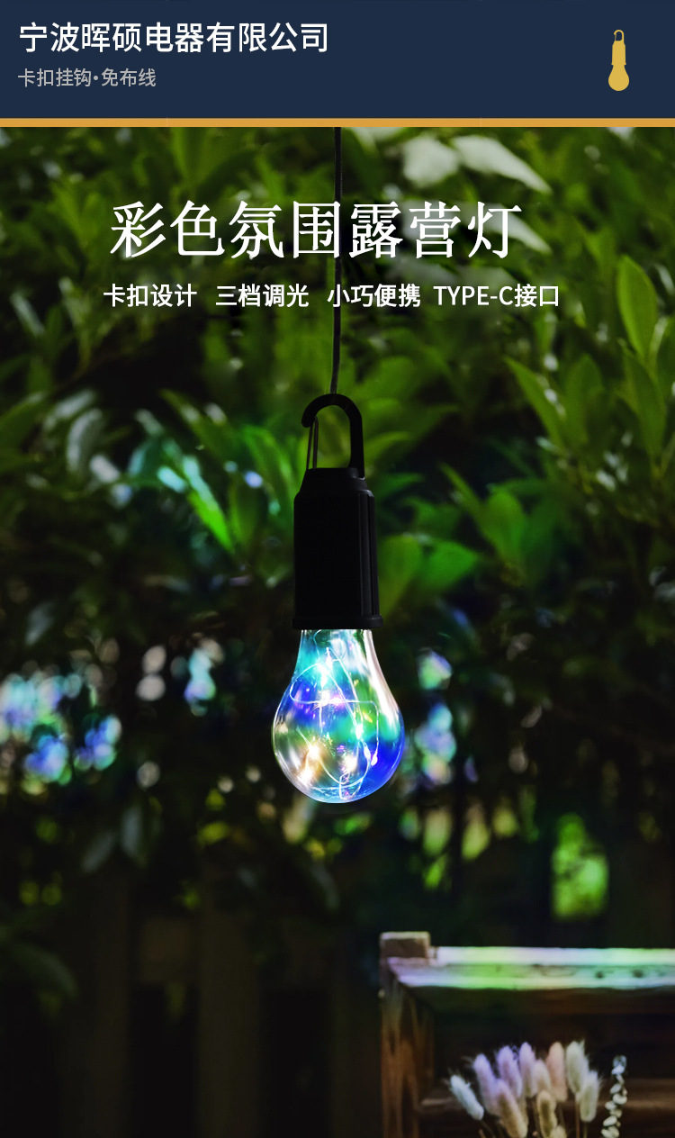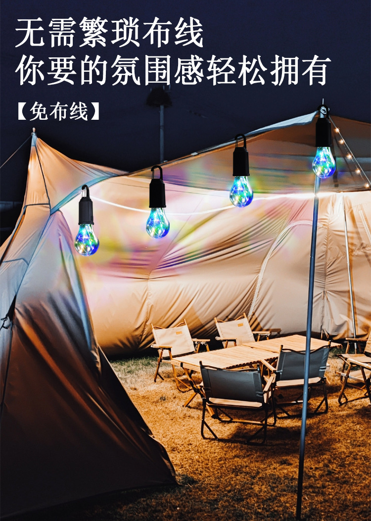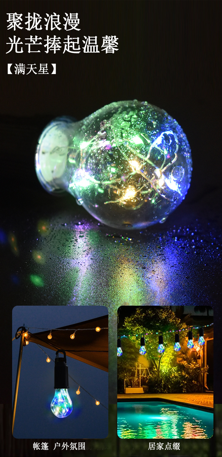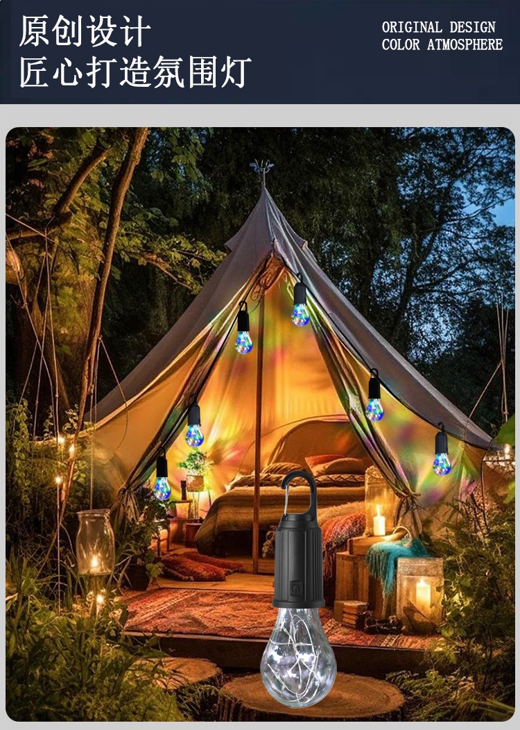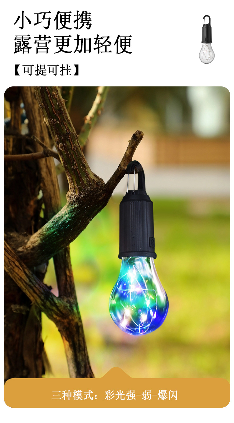 カラフルなソーラーライト充電式電球暖かい光照明屋外長寿命フック付きキャンプ雰囲気テントライト