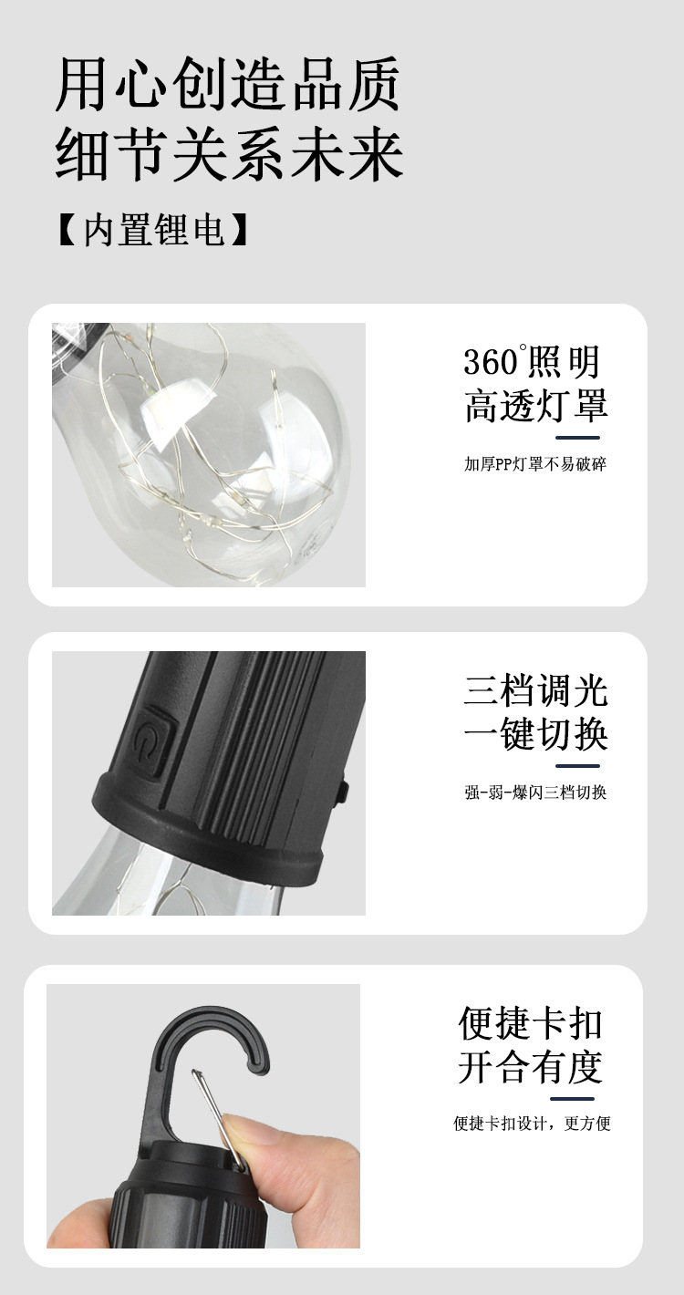 クロスボーダーアウトドアキャンプライト照明雰囲気吊り下げライト長寿命ソーラー充電キャンプライトポータブルテントライト