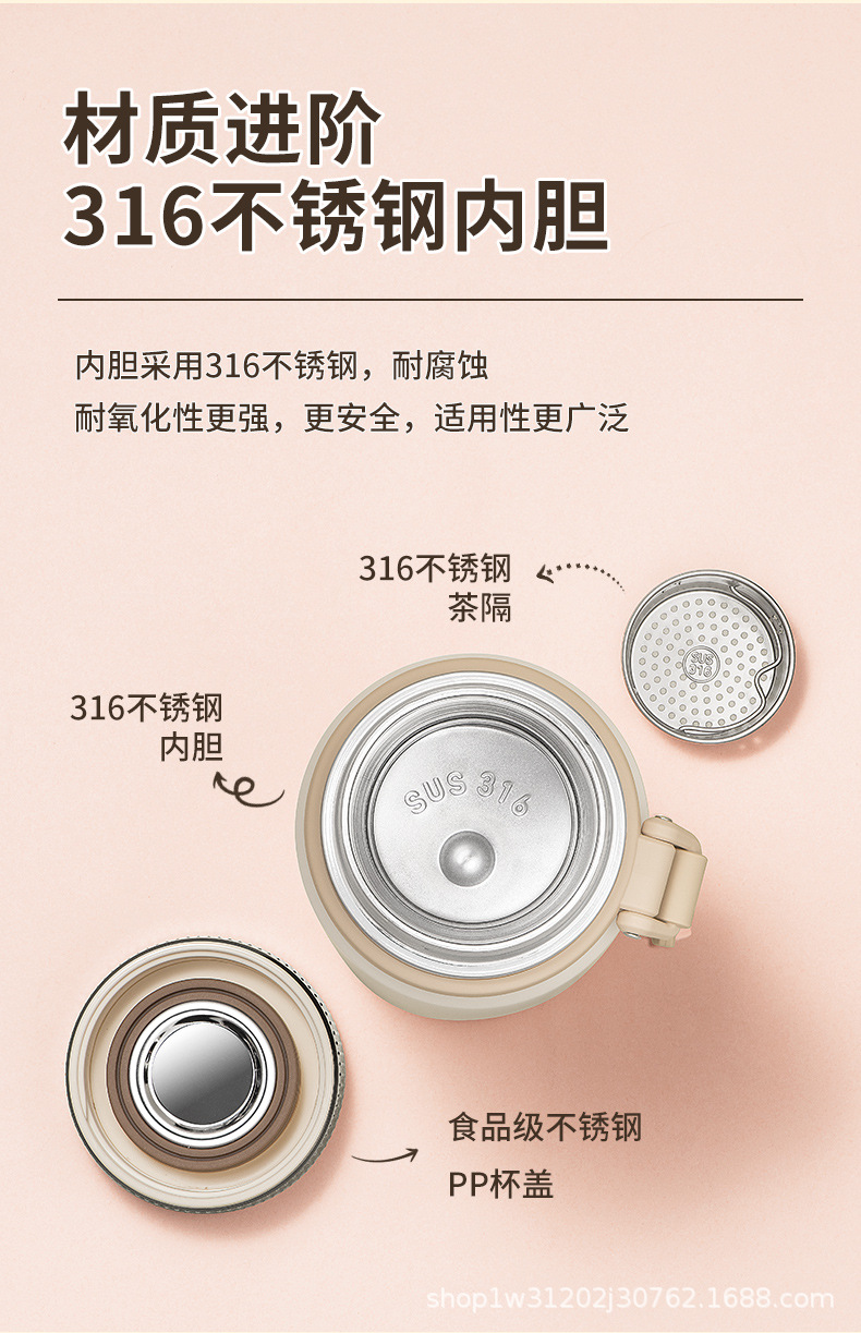 Xile 魔法瓶カップ女性の大容量 316 ステンレス鋼カップ茶水分離ティーカップ屋外ポータブルケトル
