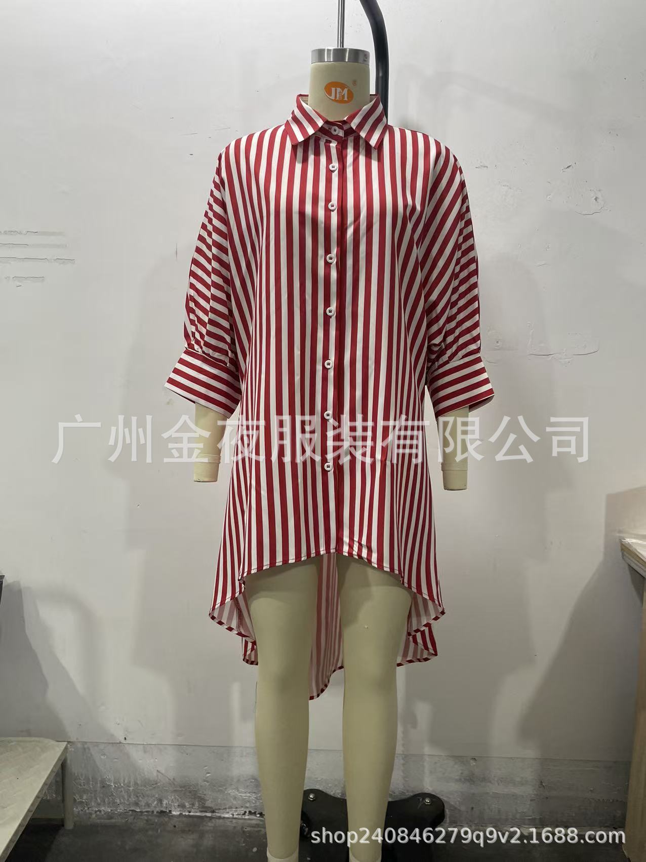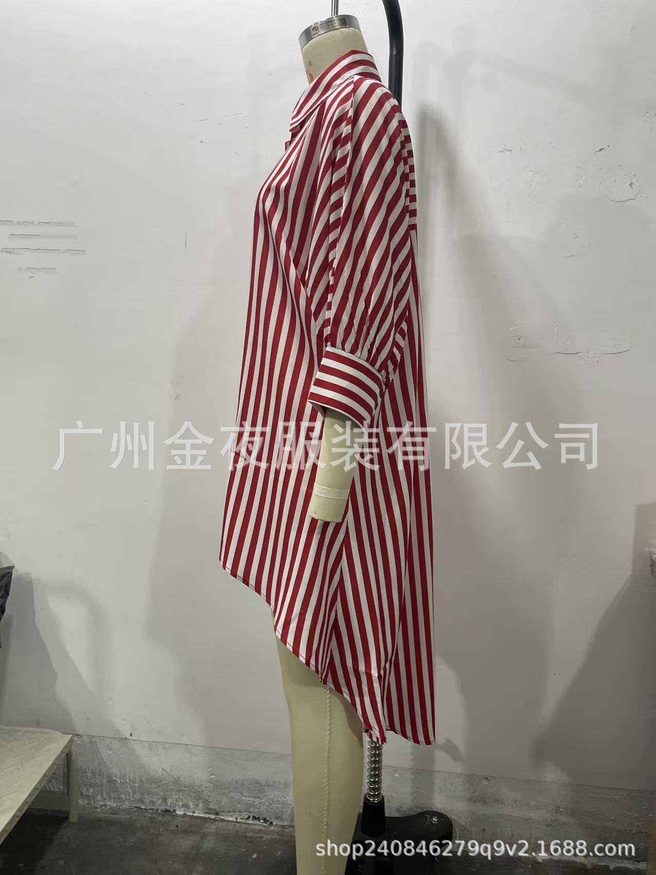25欧美跨境外贸女装优雅气质时尚通勤不规则下摆连身长袖衬衫衬衣