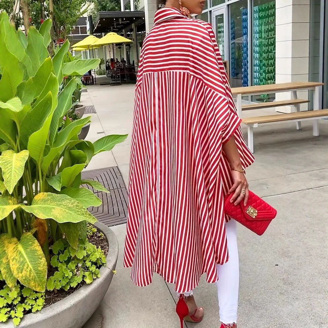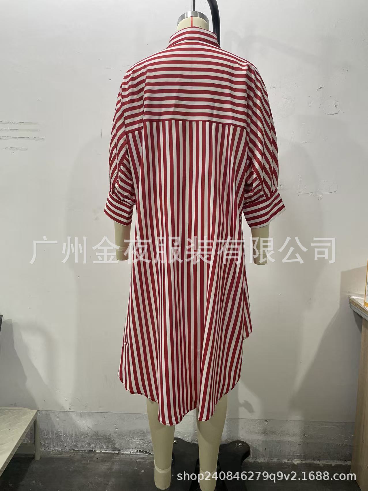# アマゾンtemu春夏欧米クロスボーダー女装ストライプ綿麻ポケットプリントカジュアルvネック長袖シャツ