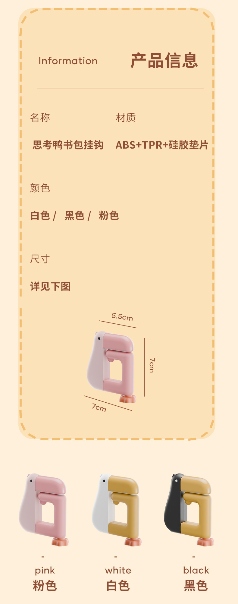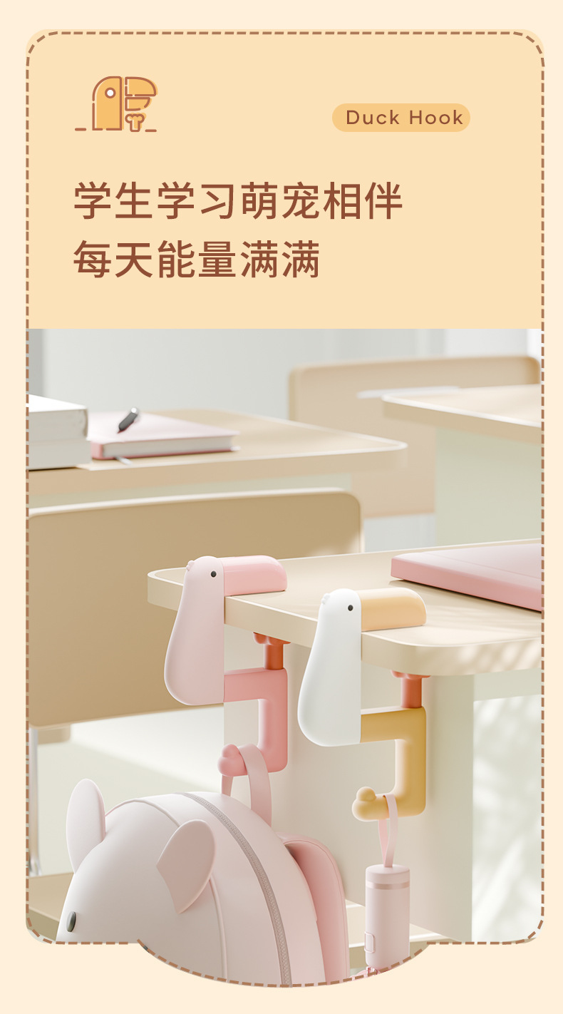 厂家卡通萌趣思考鸭多用书包挂钩学生课桌书桌边包包挂钩现货跨境