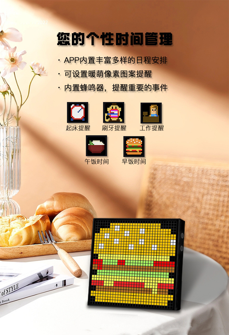 跨境专供LED像素桌面屏蓝牙氛围像素灯DIY相框创意时钟摆件自定义