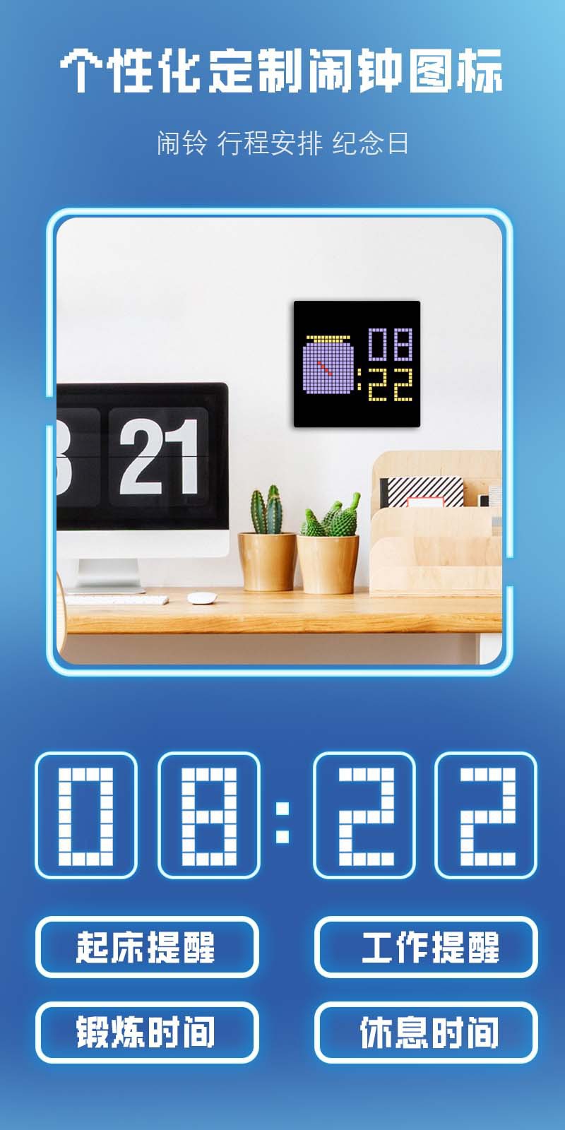 diy蓝牙像素屏电竞桌搭led屏电竞房装饰电脑桌面摆件时钟男生礼物