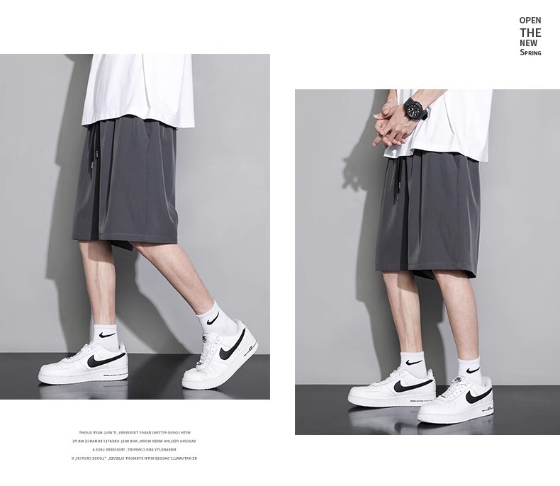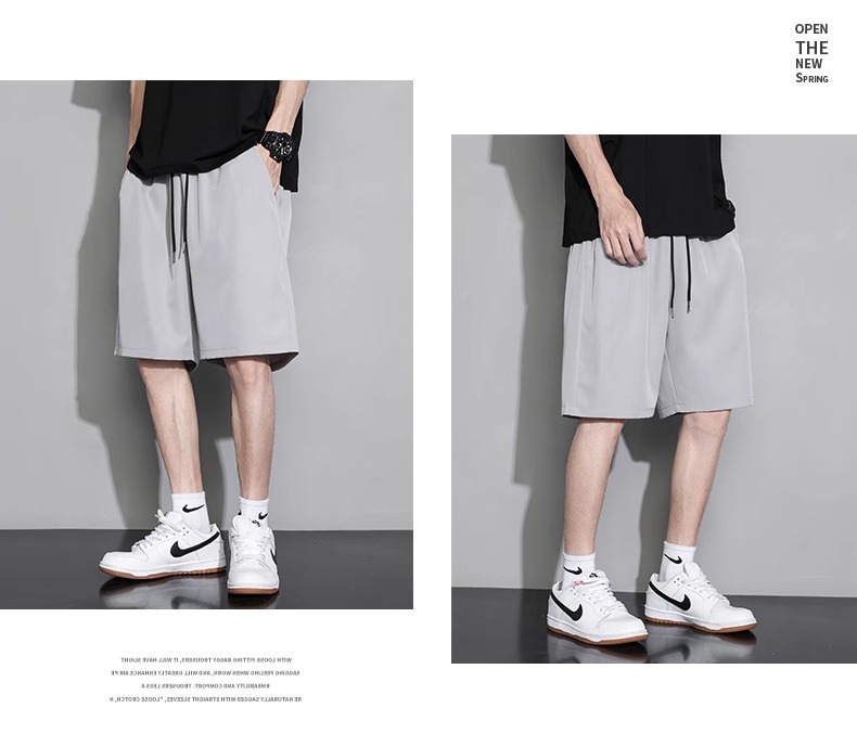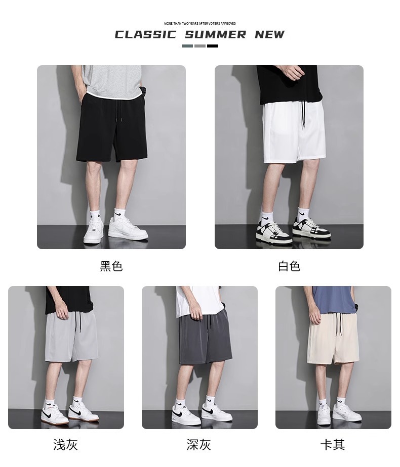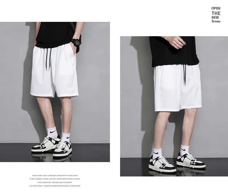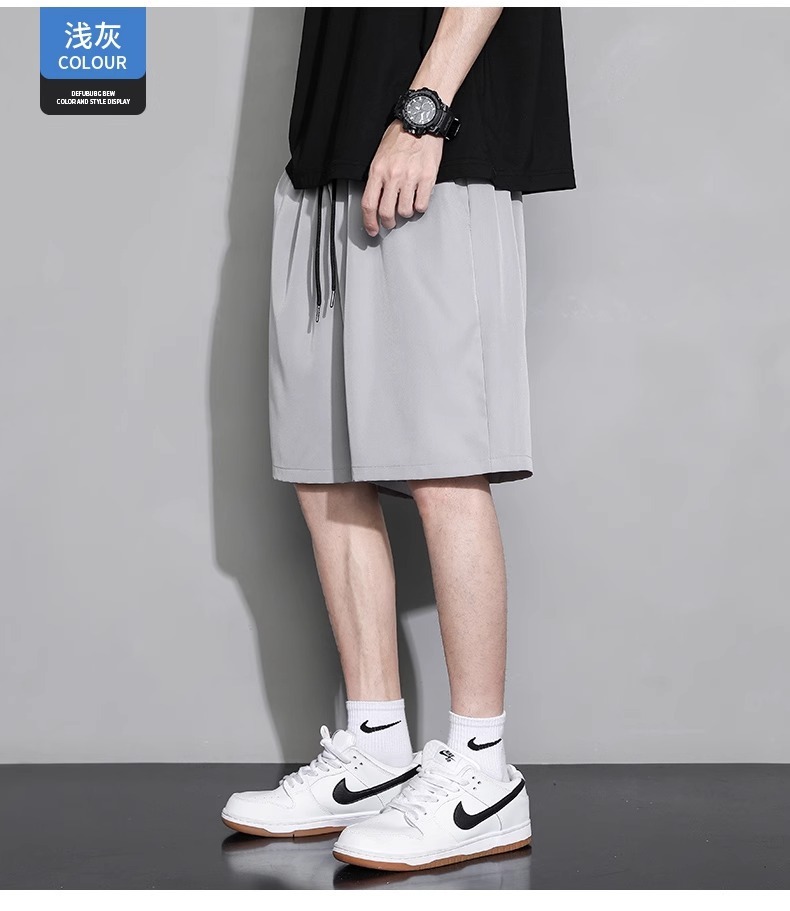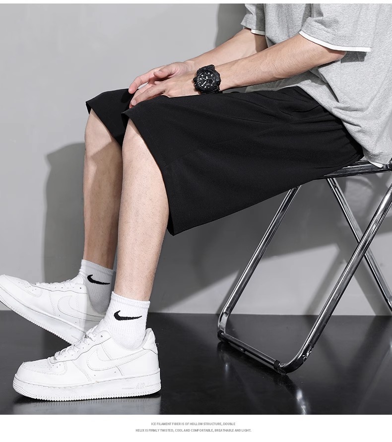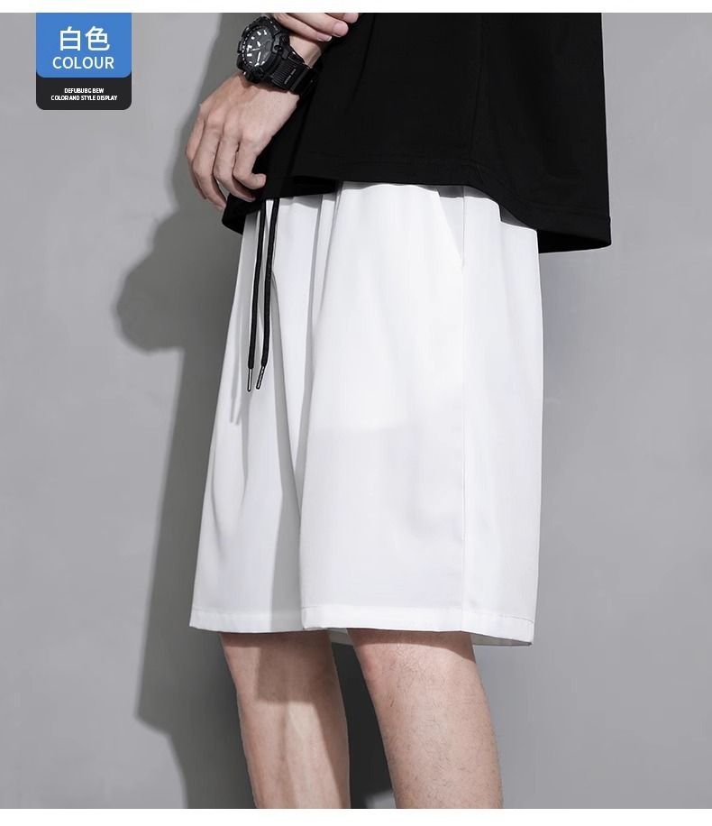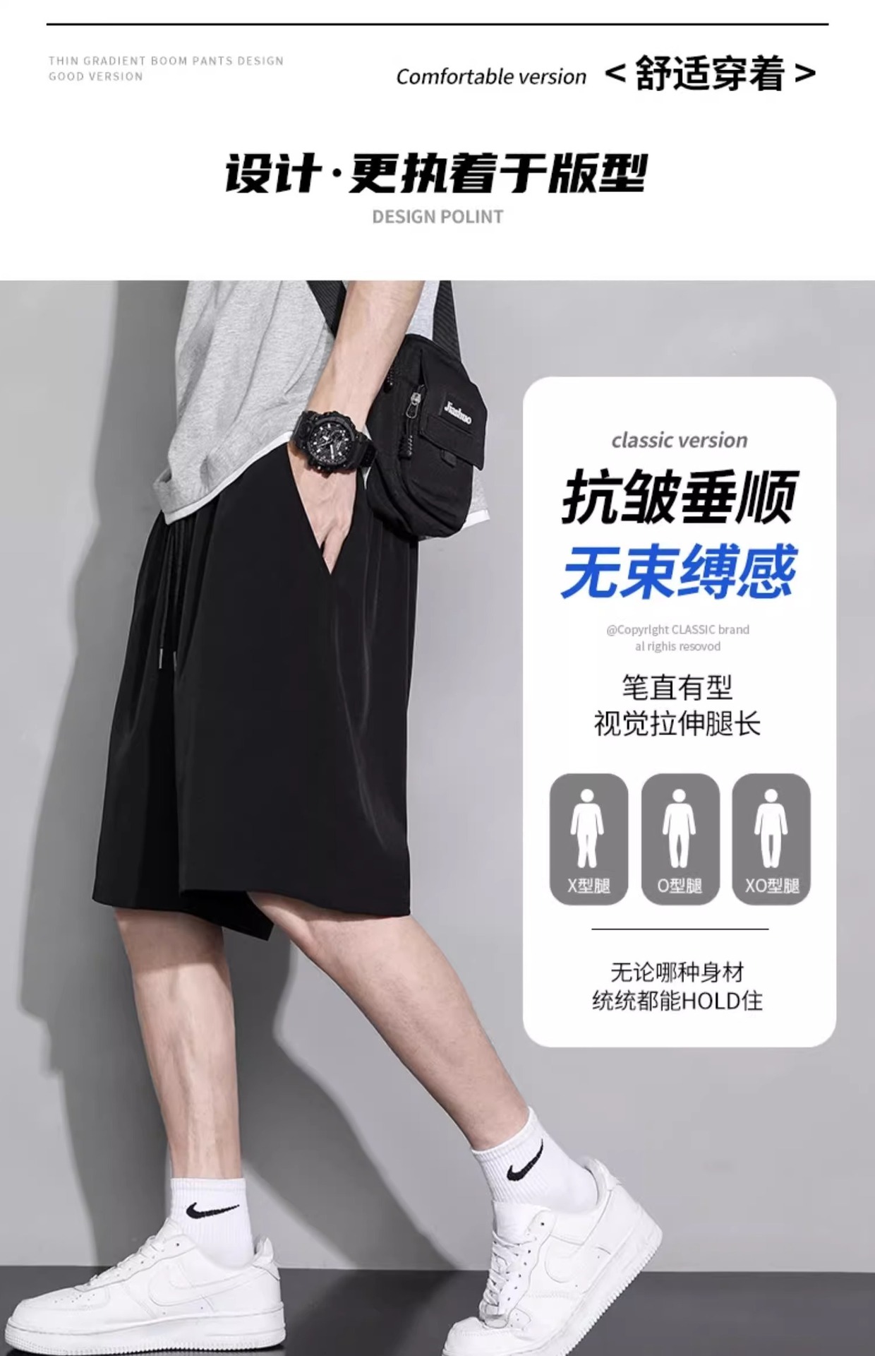 新しいアイスシルクショーツメンズ夏薄いカジュアルパンツ 2024 夏ドレープスポーツパンツトレンディなストレートレッグ 5 分パンツ