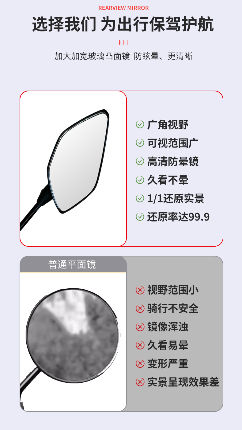 S5电动车后视镜电瓶车高清反光镜电动踏板车三轮车倒车镜观后镜