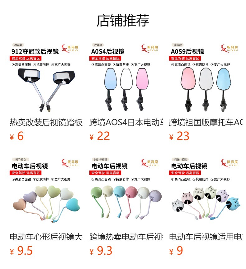 国境を越えた祖国版オートバイバックミラー広視野リフレクター AOS6 高精細改造電気自動車バックミラー
