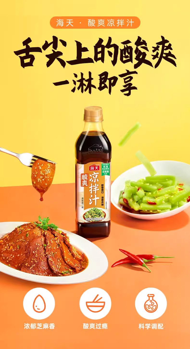 海天酸辣凉拌汁510克凉拌点蘸调味汁鲜爽调料凉菜海鲜冷泡捞汁AD