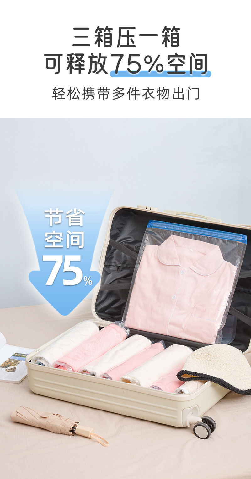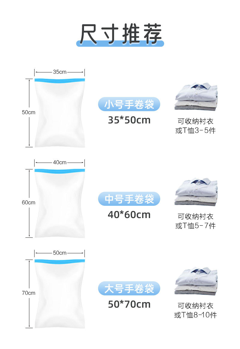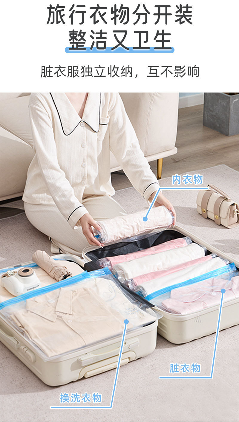 臻尼压缩袋免抽气旅行衣物加厚手卷真空压缩袋学生宿舍出差专用