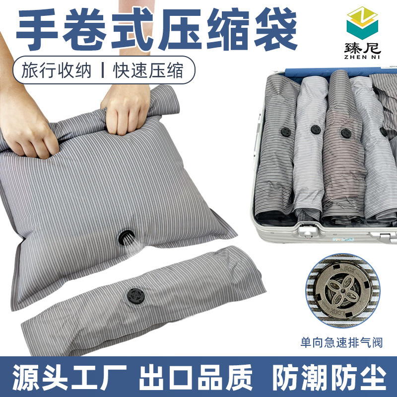 クロスボーダー手巻き圧縮袋空気抜き服布団真空収納袋旅行スーツケース専用圧縮収納
