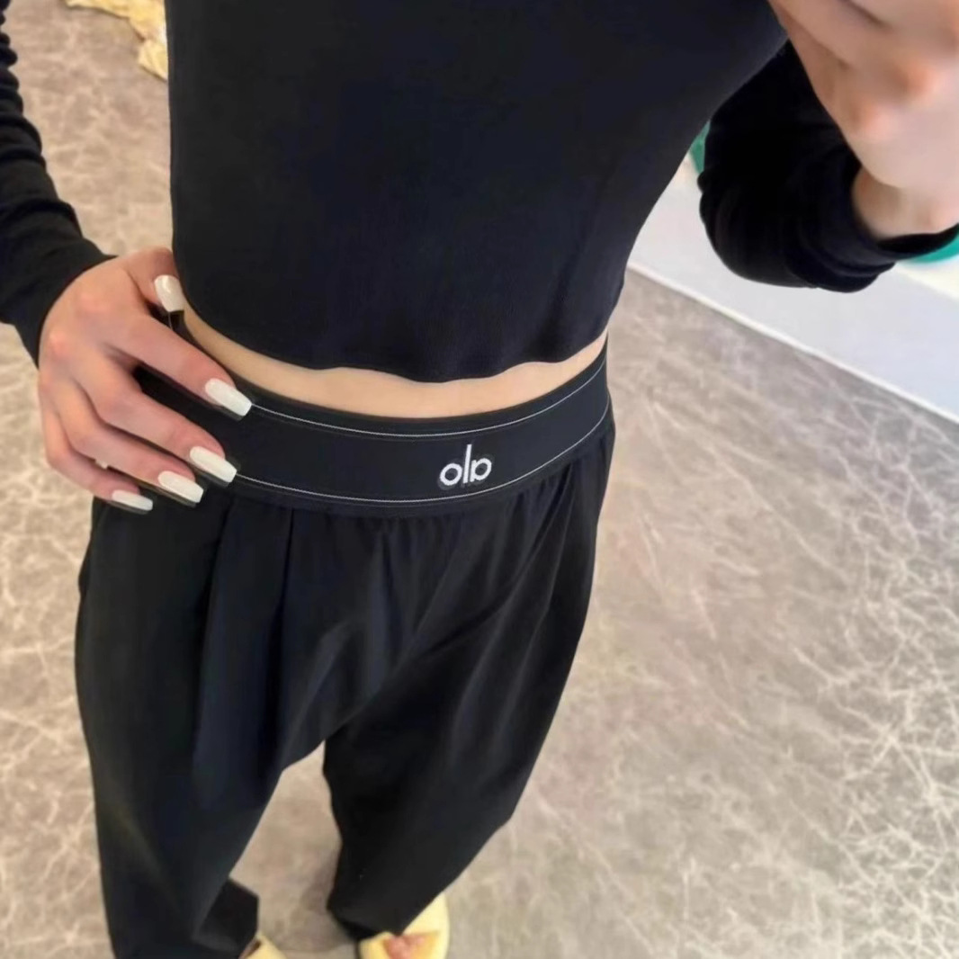 ALO カジュアルスポーツスイートパンツ新しい織りウェビングルーズスリミングワイドレッグライトパンツハイウエストパンツ