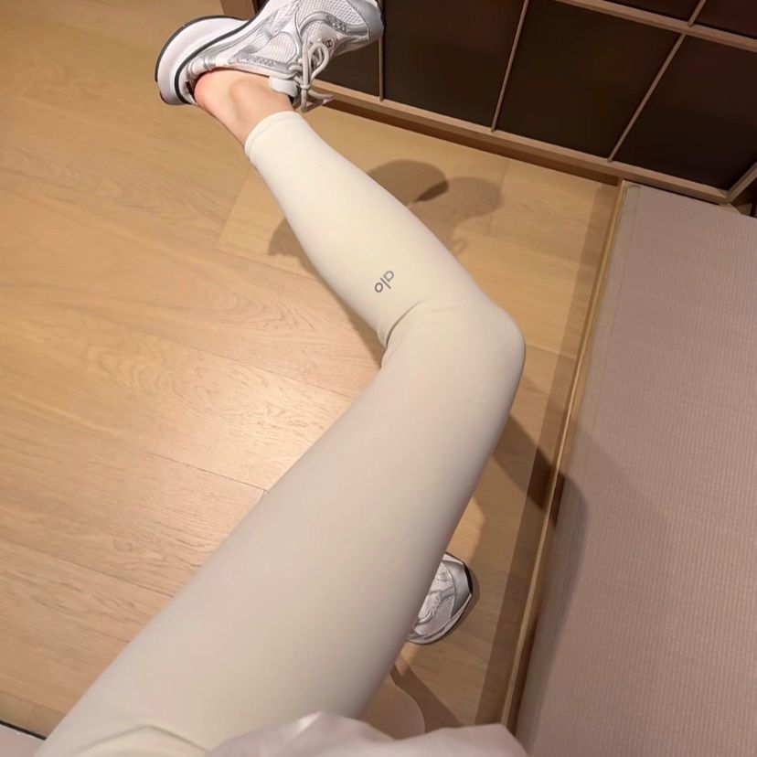 ALO クリームアイボリーヨガパンツハイウエストストレッチヨガフィットネススポーツランニングフィットネスレギンスアウターウェア
