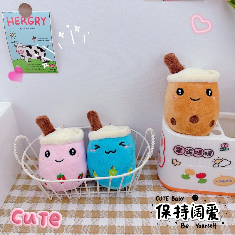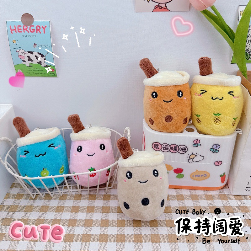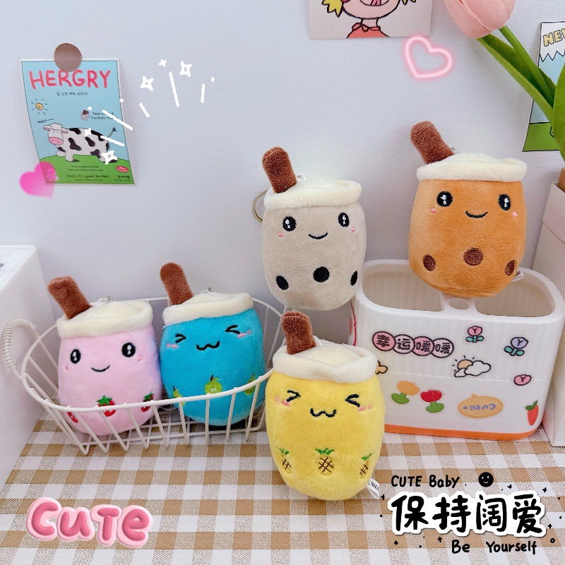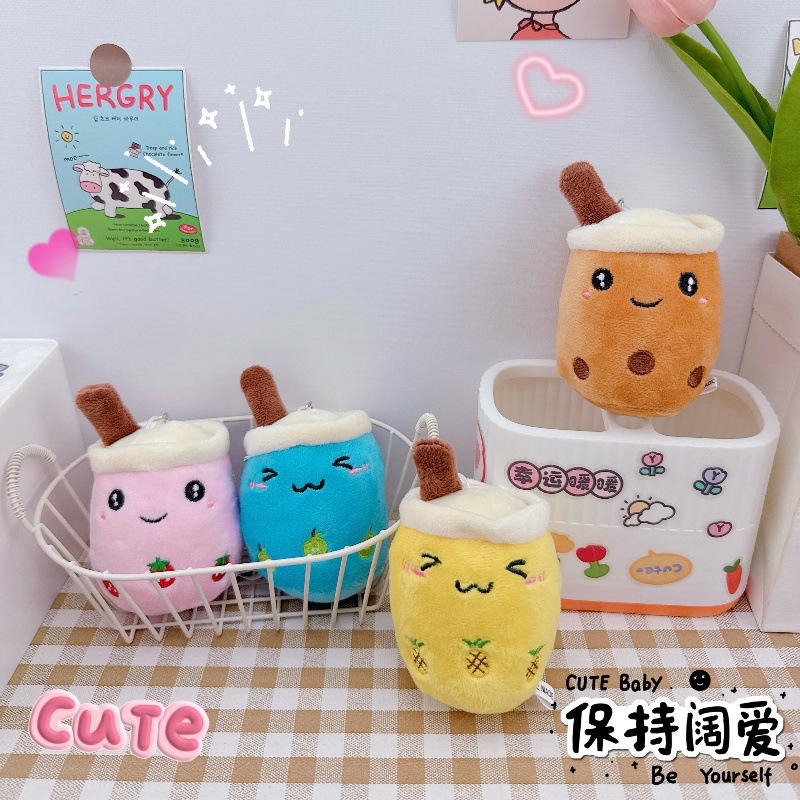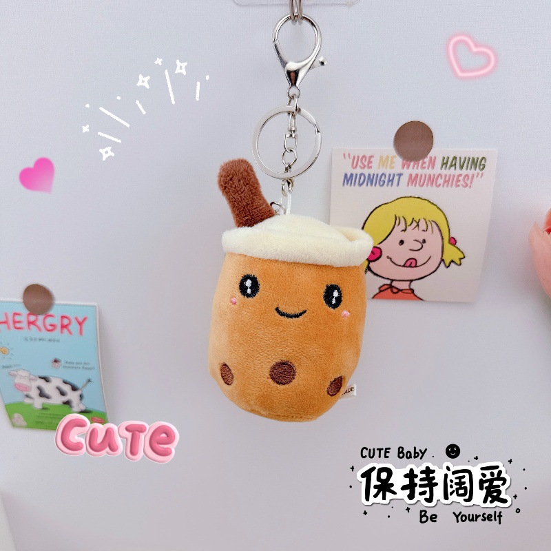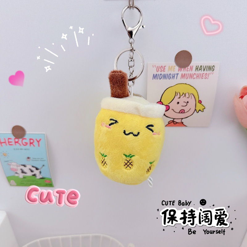 かわいいフルーツパールミルクティーカップキーホルダーペンダントクリエイティブぬいぐるみミルクティーカップ人形おもちゃカップル小さなペンダント