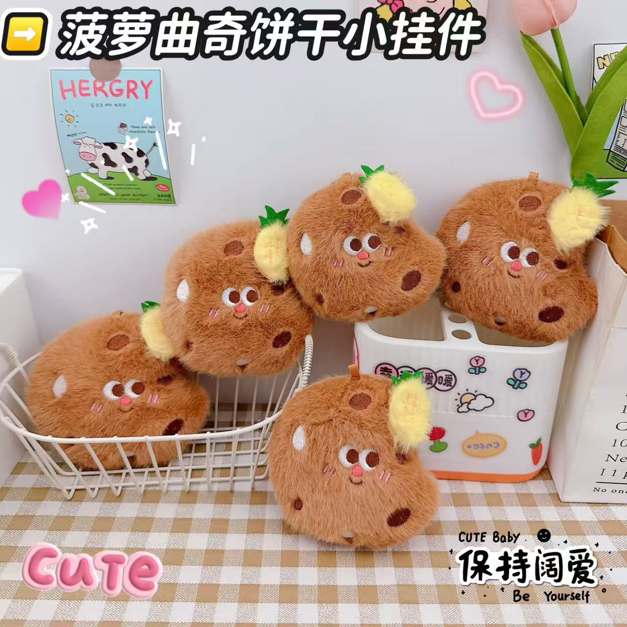 可爱菠萝曲奇饼干钥匙扣挂件创意毛绒曲奇饼干挂件少女心书包挂饰