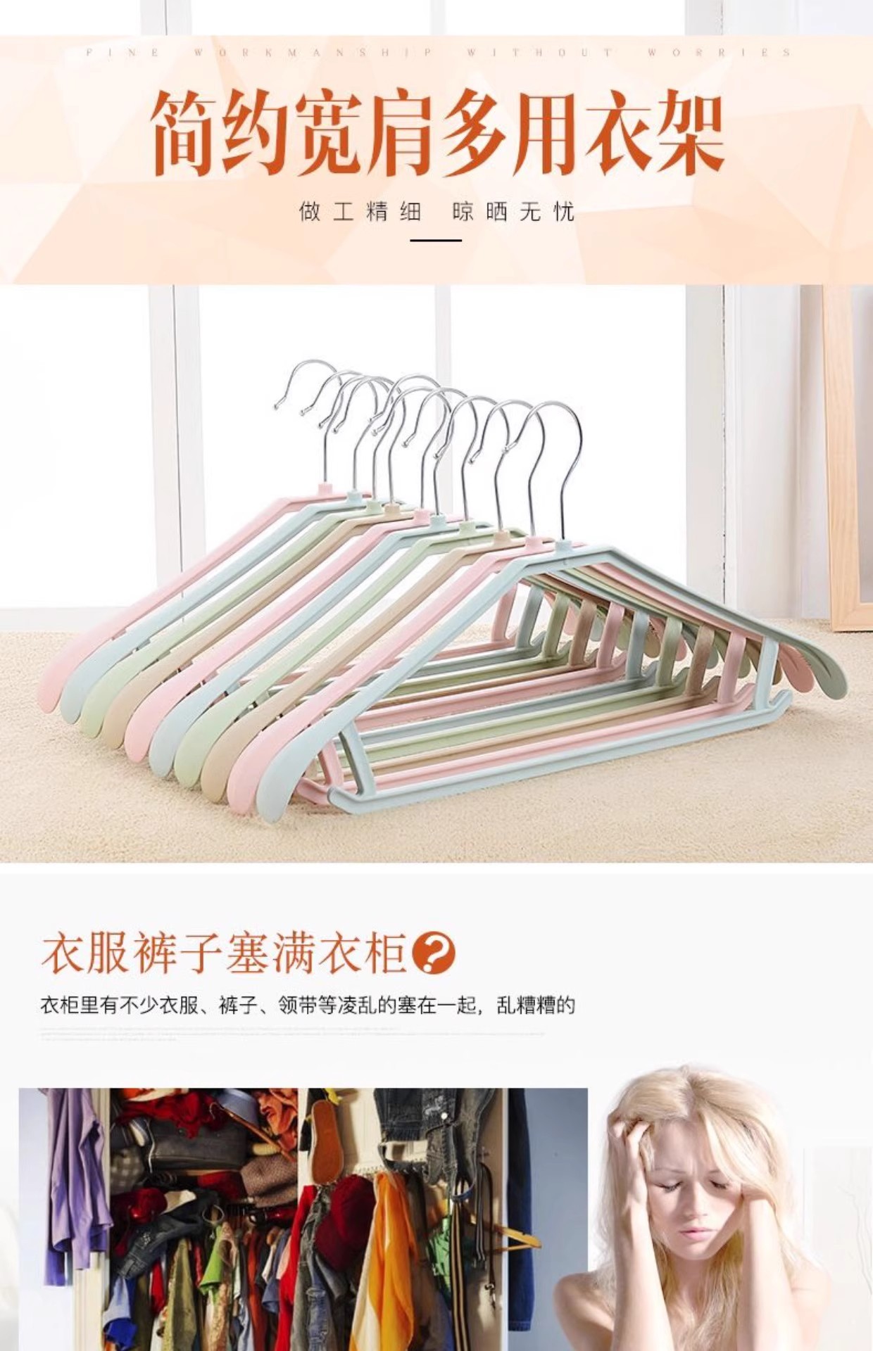 新款浸塑无痕宽肩衣架多功能家用防滑无痕加粗宿舍阳台晾衣撑批发