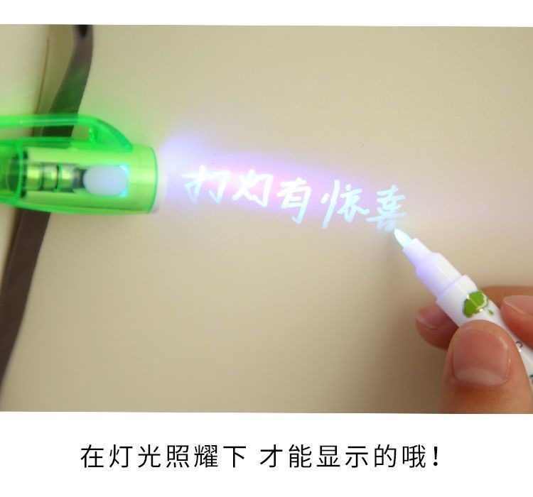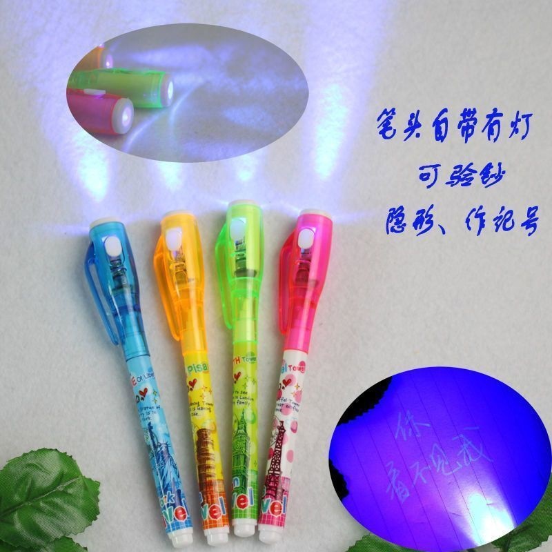 隐形荧光笔灯照笔夜光隐身笔带紫外线手电筒闪光秘密写字发光的笔
