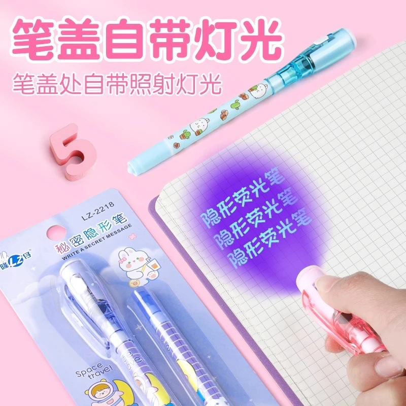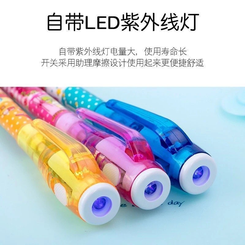 6支隐形荧光笔灯照笔夜光隐型笔带紫外线圆珠笔