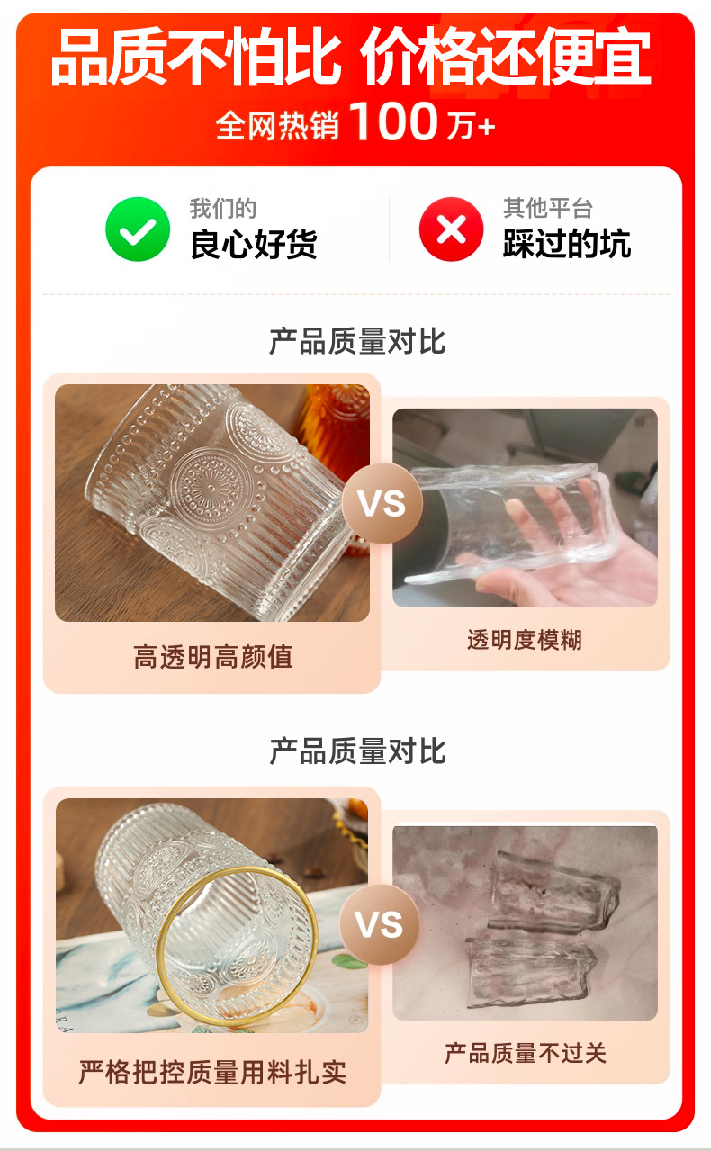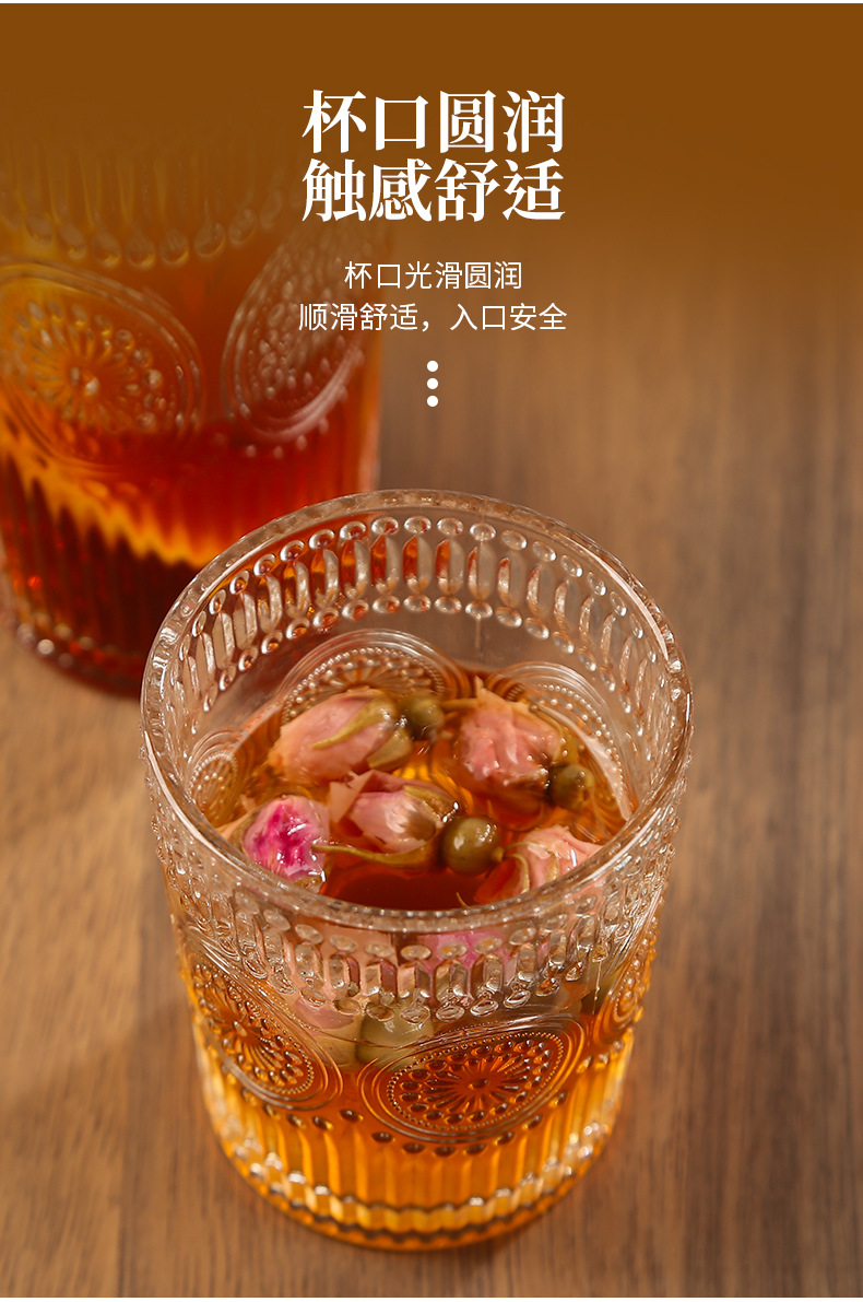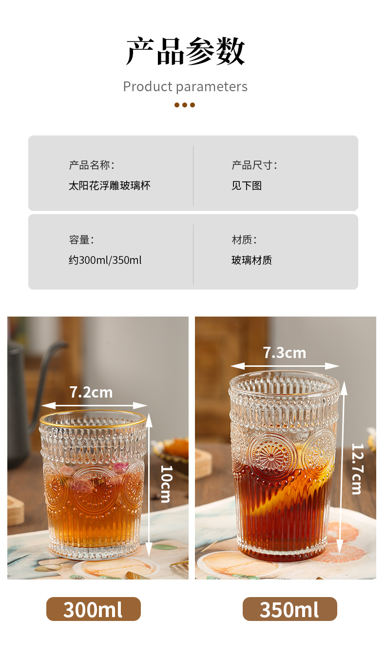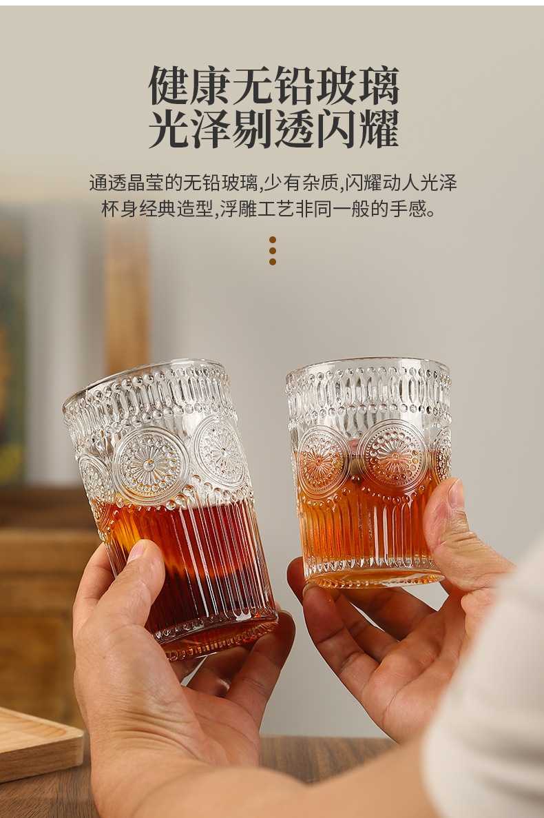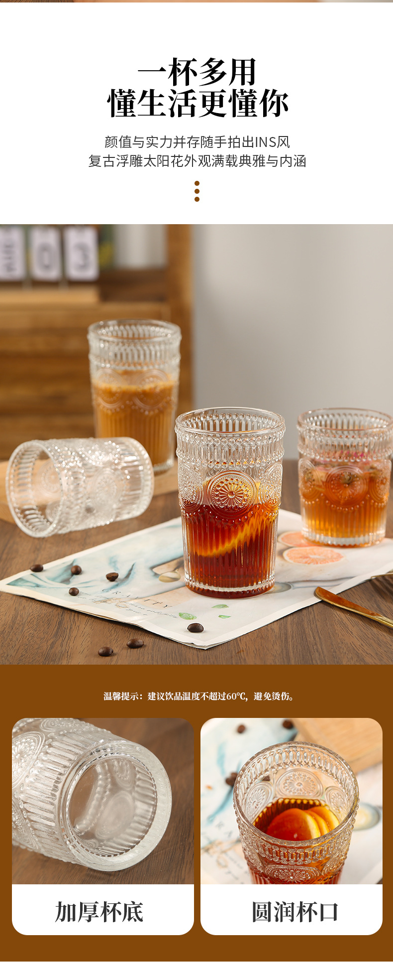 创意太阳花复古浮雕玻璃杯透明大容量ins高级感家用伴手礼玻璃杯