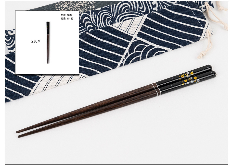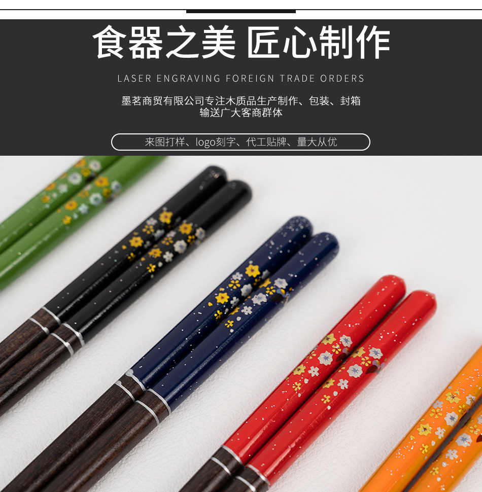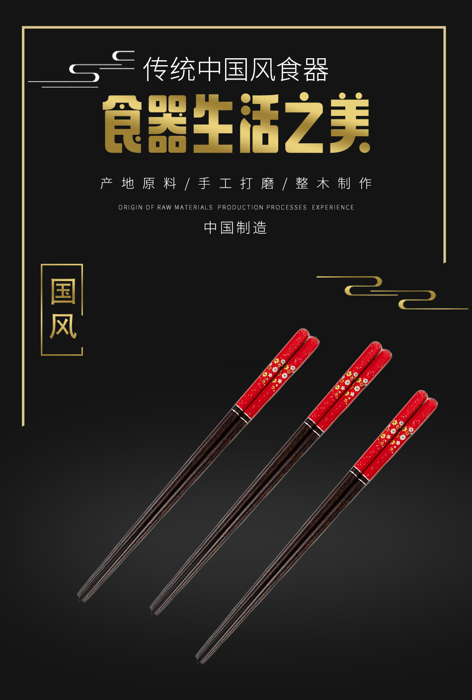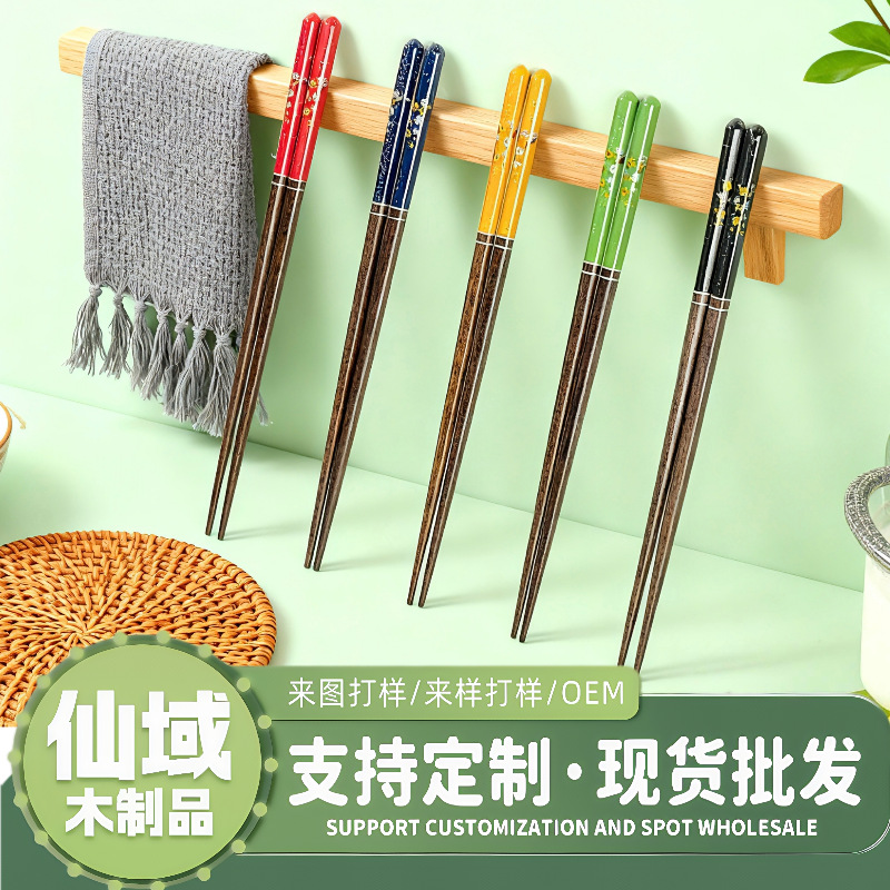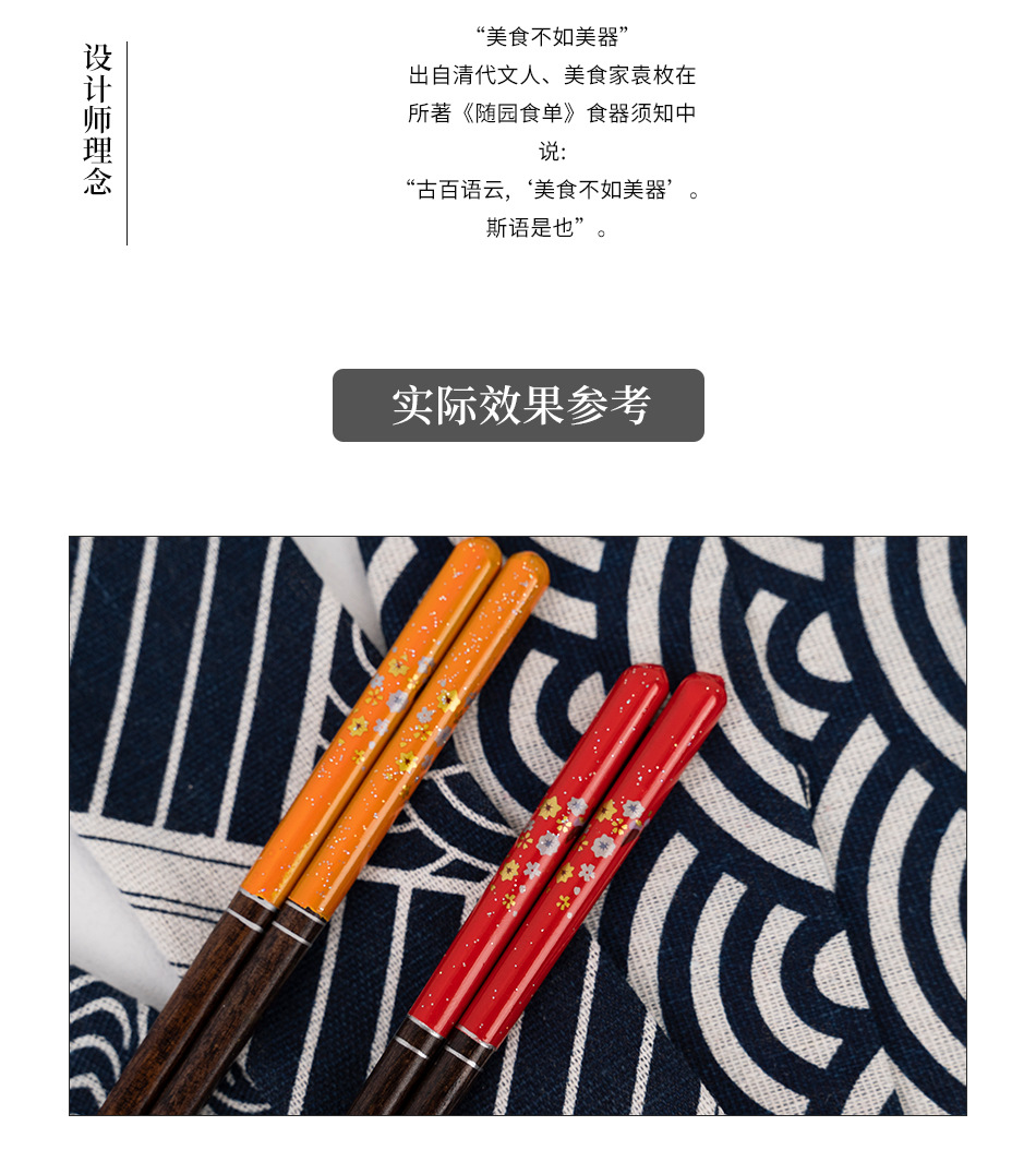 日式实木筷子印花漆柄筷便携木筷家用尖头筷高级感创意酒店筷子