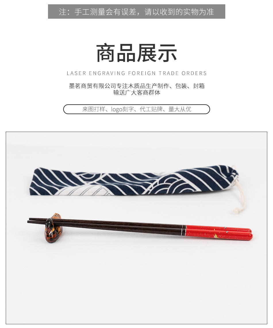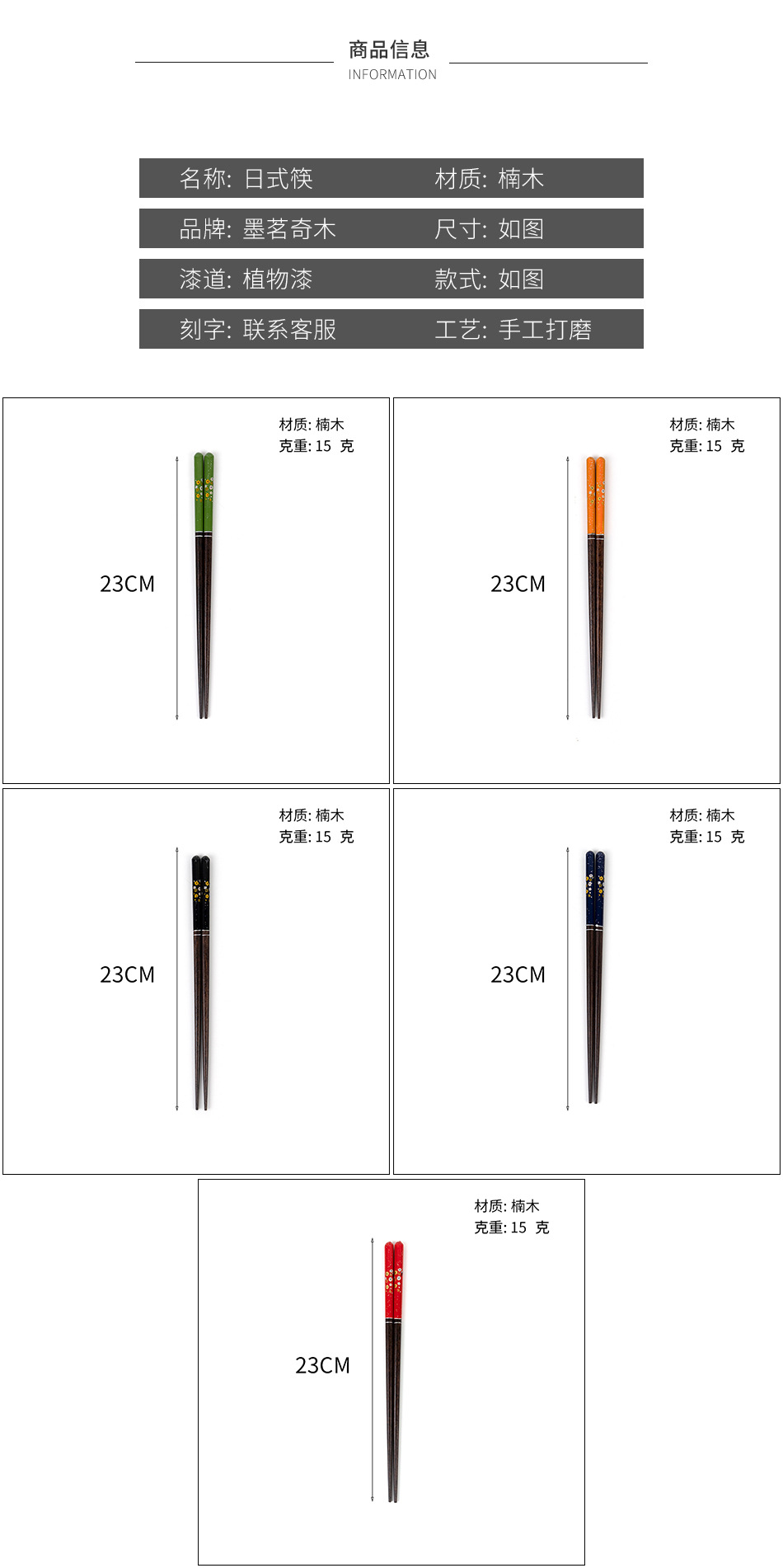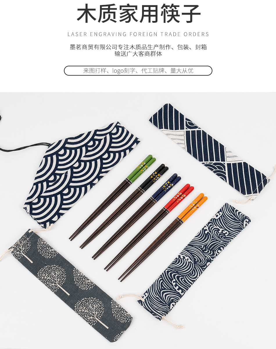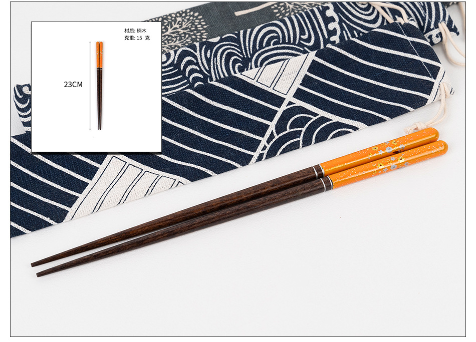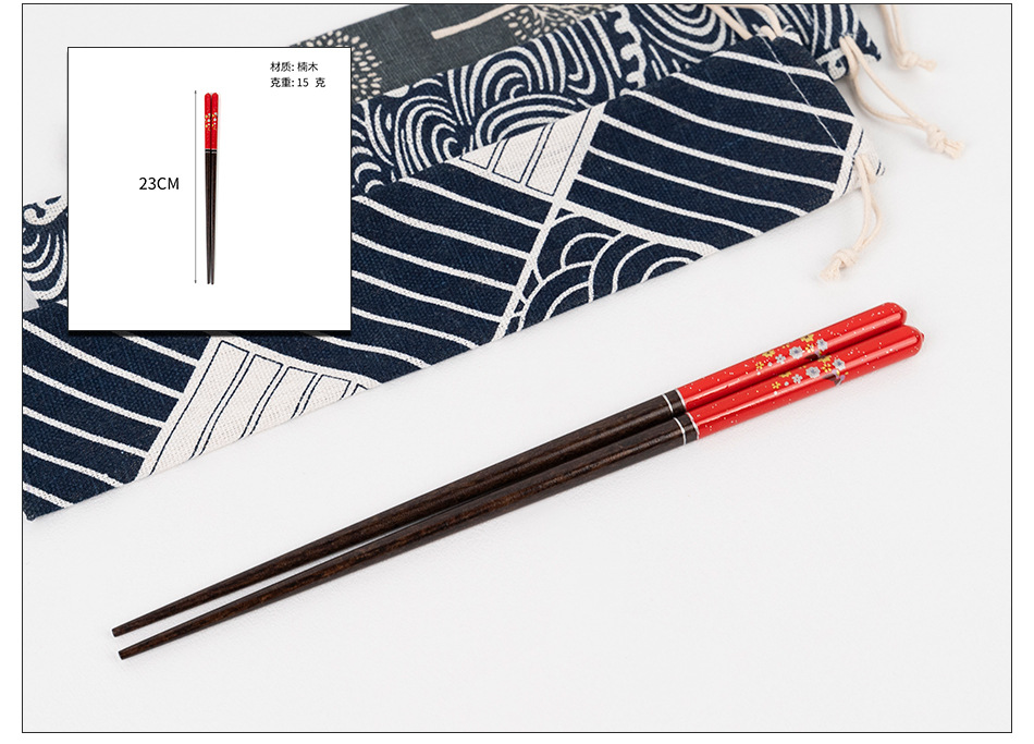日式实木筷子印花漆柄筷便携木筷家用尖头筷高级感创意酒店筷子
