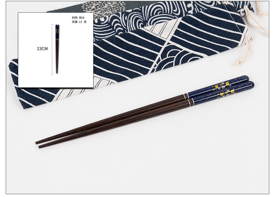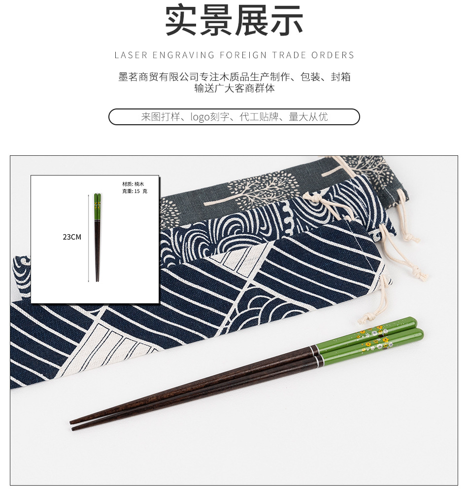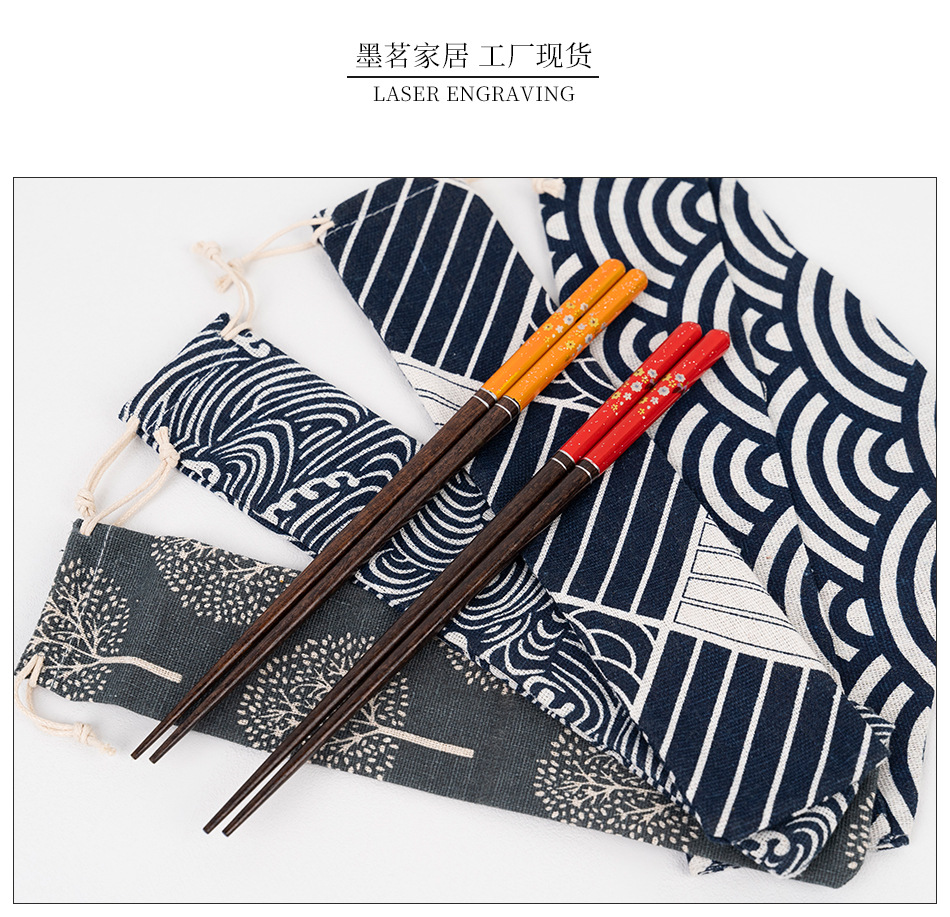 Mo Ming 和風 22.5 センチメートル木製箸、フォーク、スプーン 3 点セットキッチン家庭用箸インターネット有名人の糸巻き収納袋
