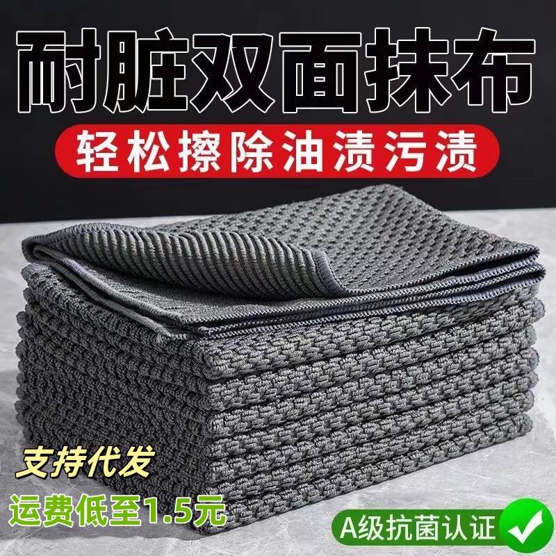 小麦粒たわし、厚手の家庭用抗菌雑巾、ノンスティック、痕跡なし、汚れにくい、家庭用両面テーブルワイプと食器用クロス