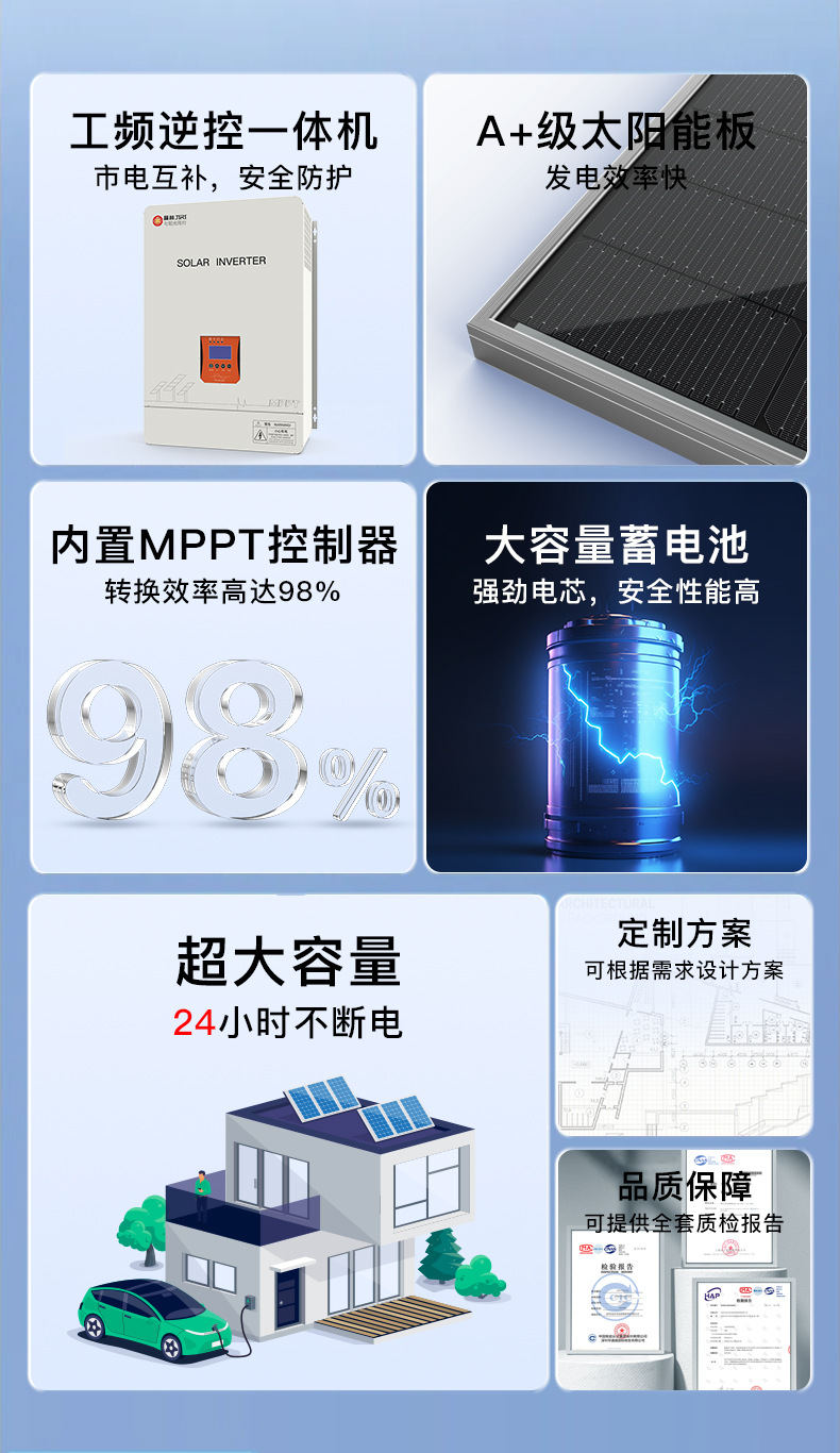 オフグリッド太陽光発電逆制御統合機逆流防止充電家庭用壁掛け電源周波数ソーラー蓄電インバーター