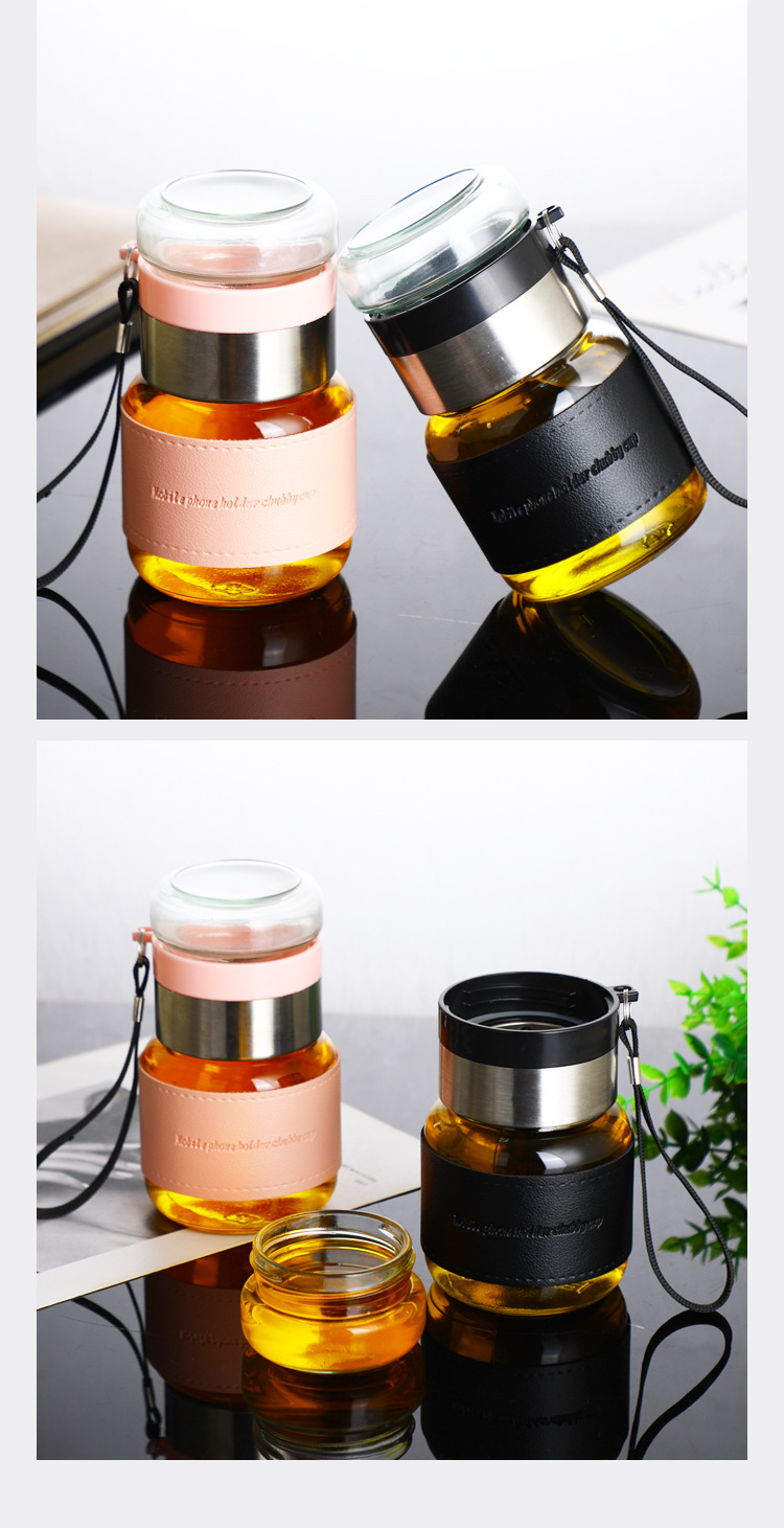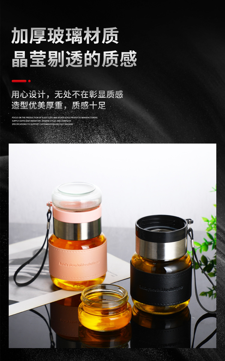 现货高颜值玻璃杯户外透明泡茶杯便携式随手杯防烫茶水分离杯子