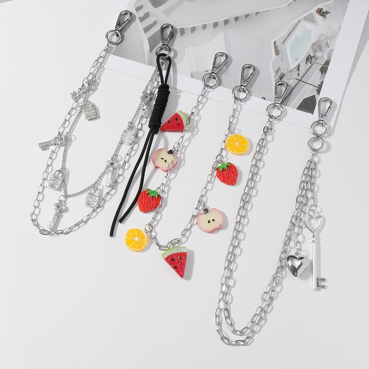 国境を越えた爆発金は洗練されたシンプルなアニメシミュレーション果物銀色チェーン愛キー & ロックペンダント