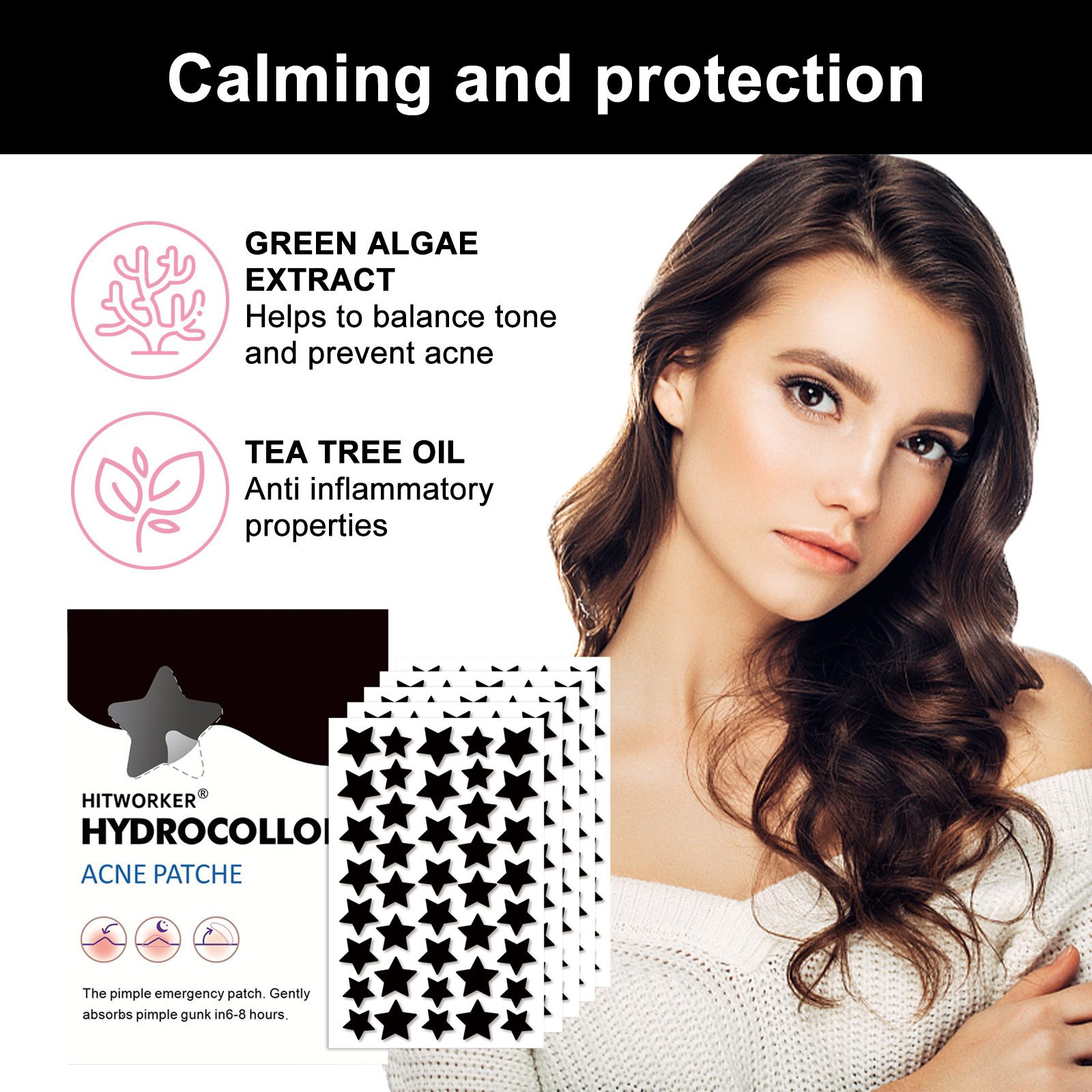 顔用ハイドロコロイドニキビパッチ、目に見えないメイクアップ、閉じたニキビ、ニキビ浄化、防水性と通気性、複数の仕様を提供する国境を越えた特別供給