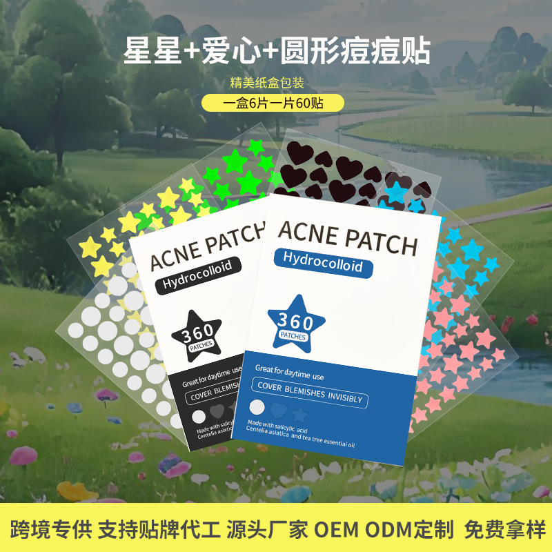 跨境彩盒装痘痘贴PE材质水胶体 360粒隐形星星爱心圆形遮瑕痘痘贴