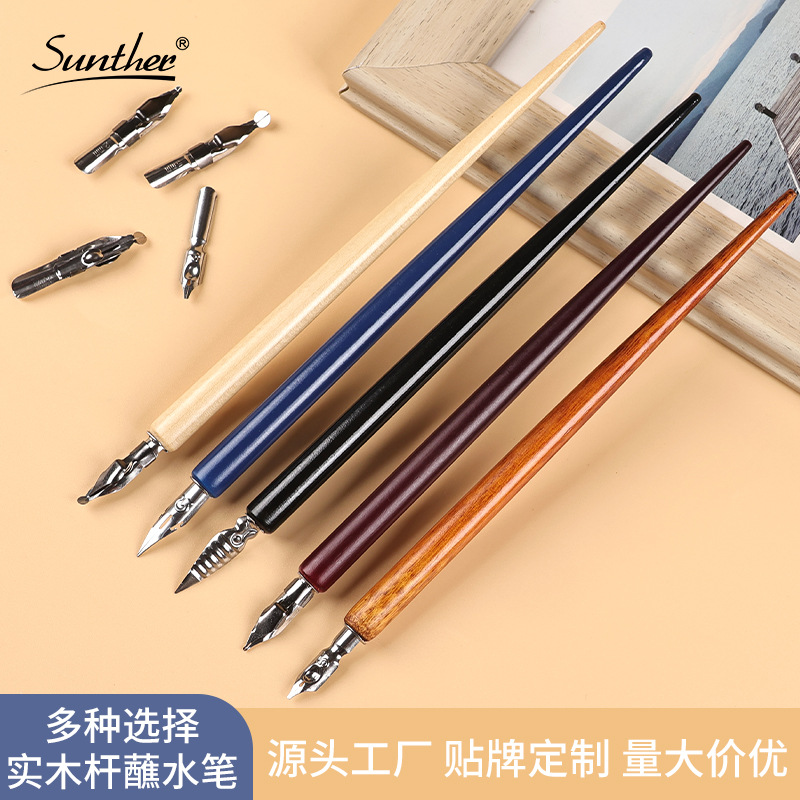 新款蘸水笔实木杆艺术英文书法漫画笔套装可换笔尖木杆手工笔批发