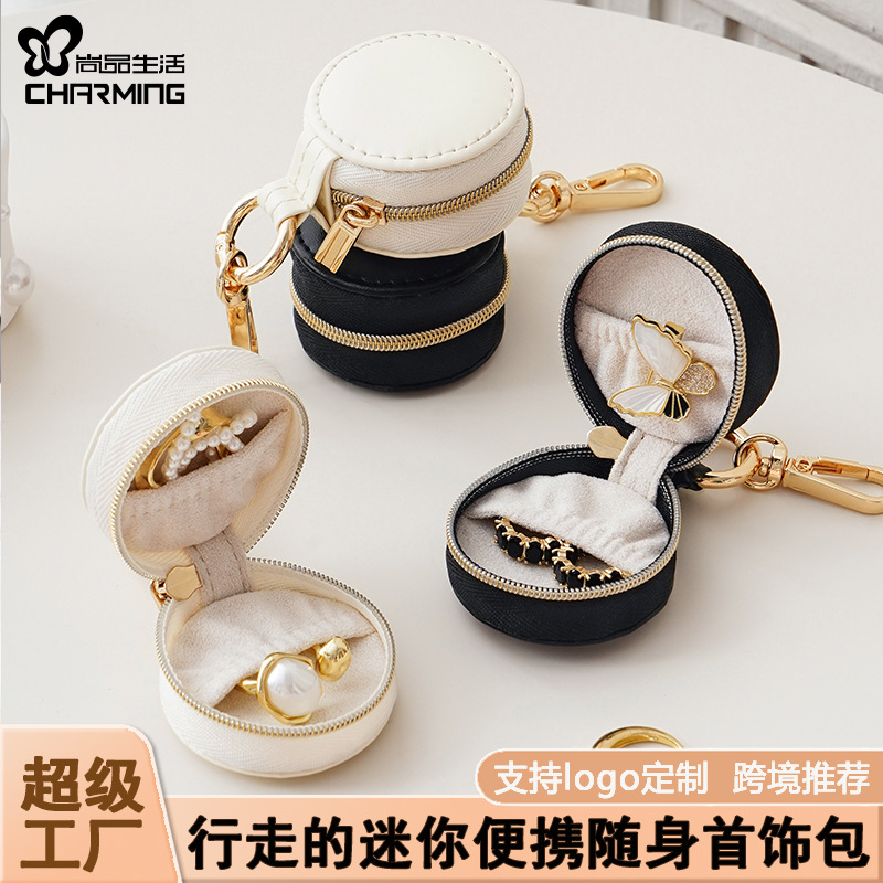 クロスボーダー欧米風丸型ジュエリーボックス ミニイヤリング・指輪収納ボックス 小型旅行用ジュエリー収納 ポータブル