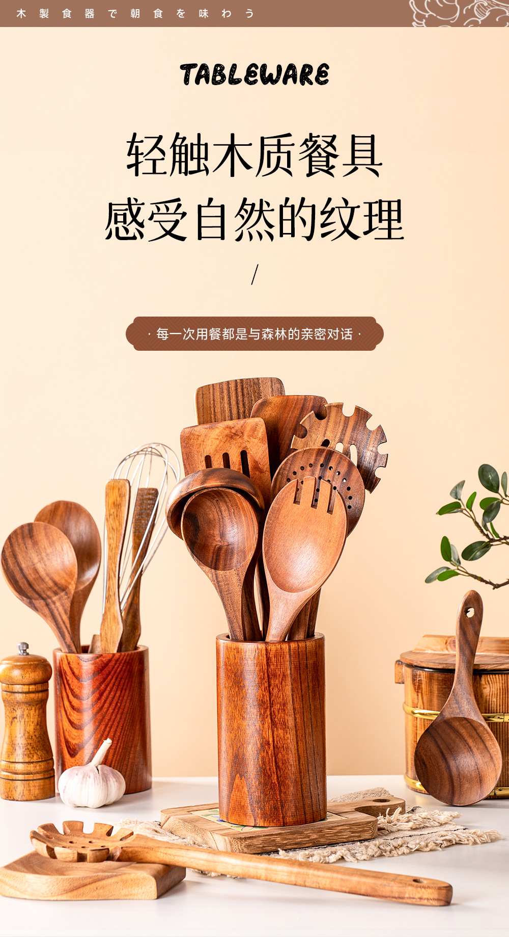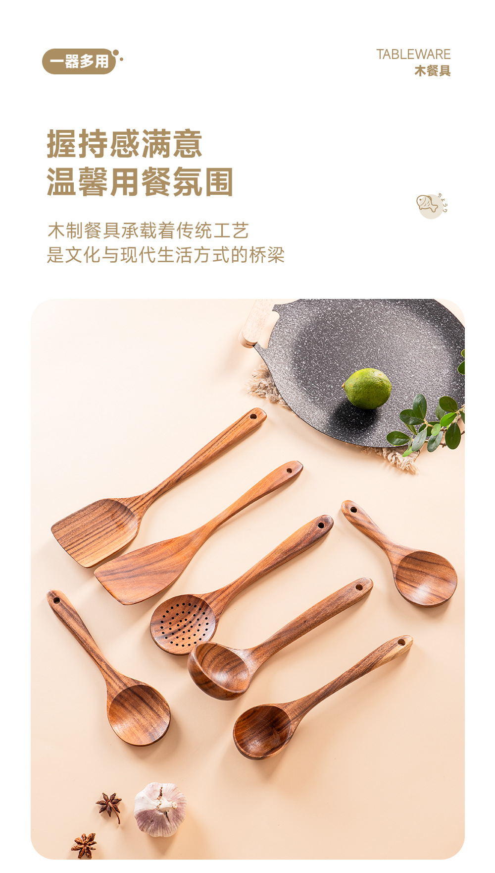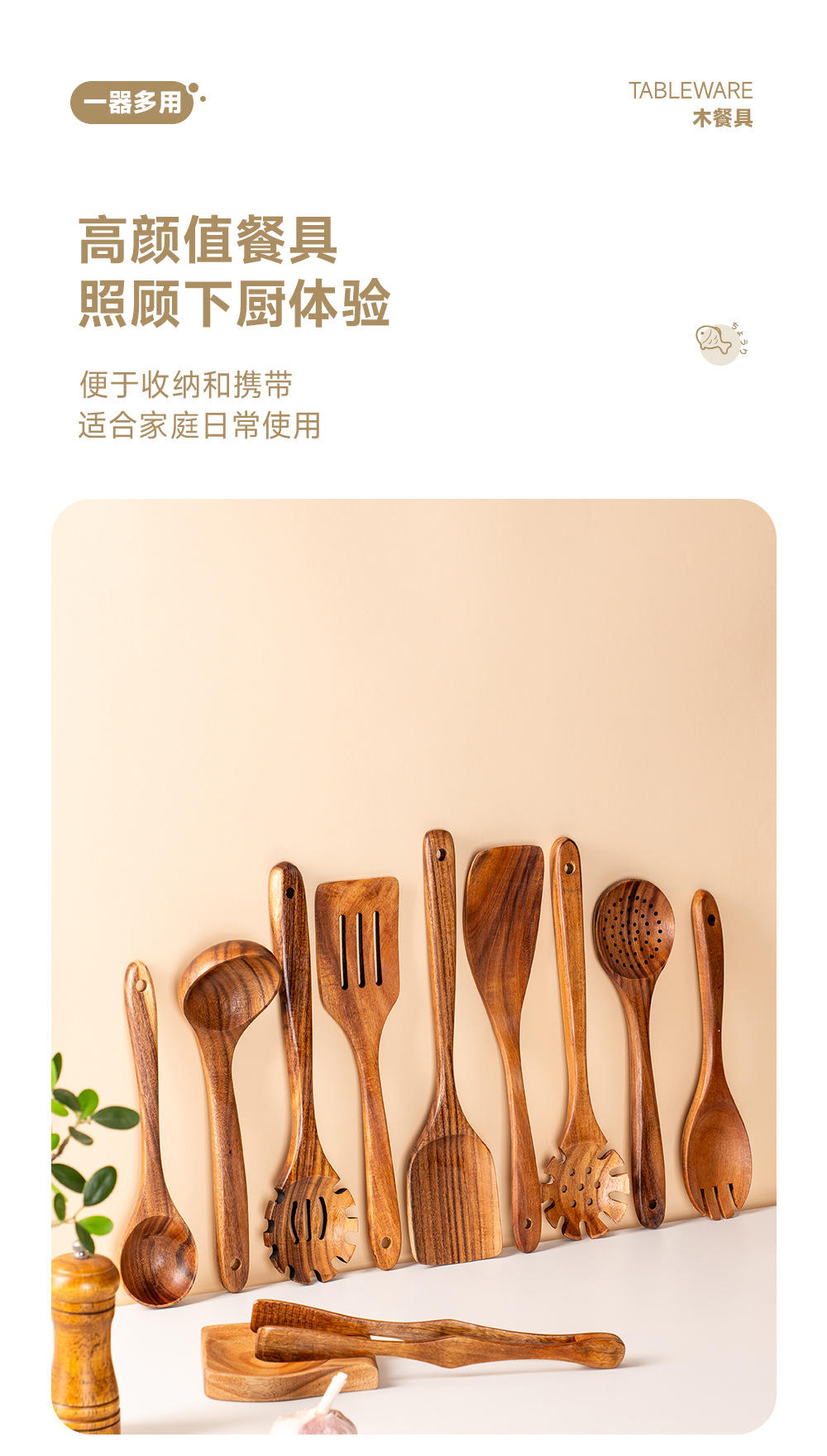 相思木烹饪勺铲套件多规格家用长柄锅铲不粘锅用大号汤勺柚木厨具