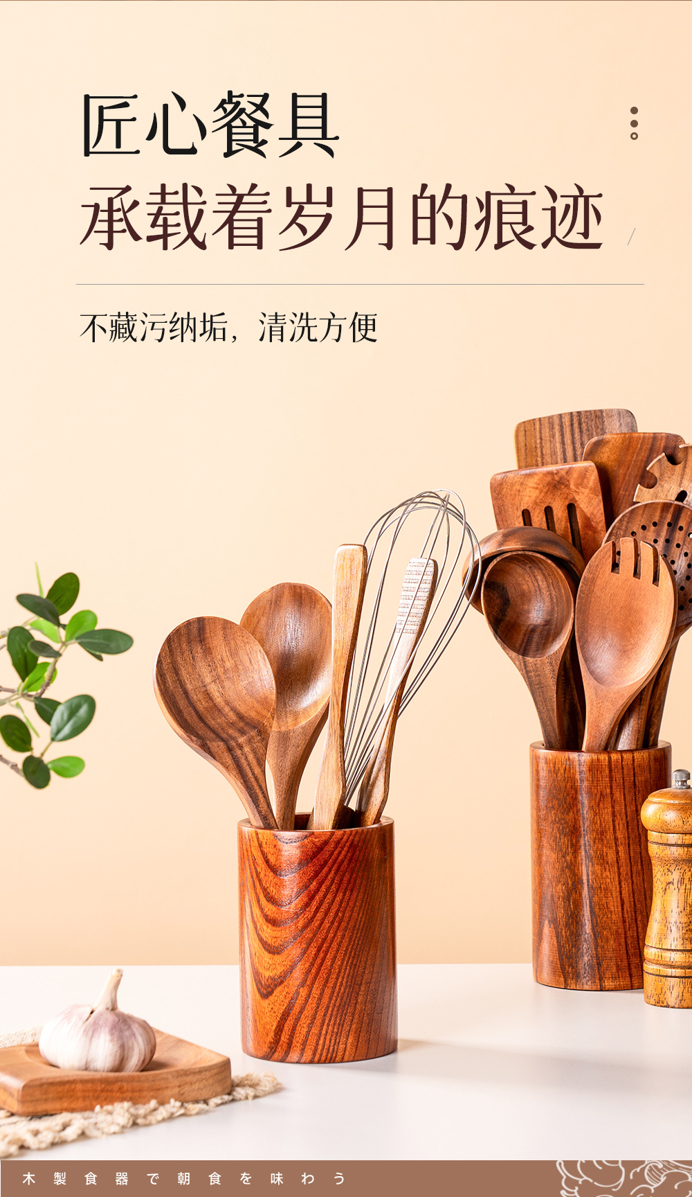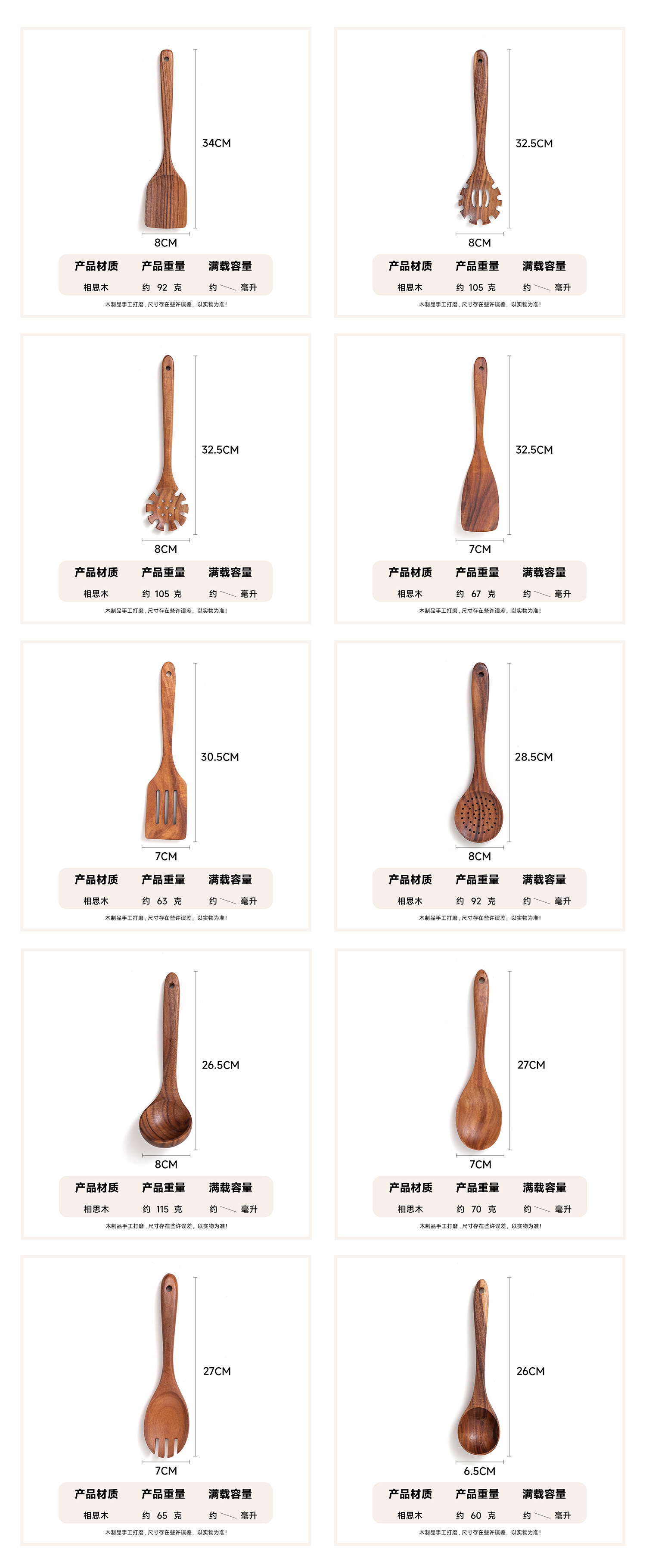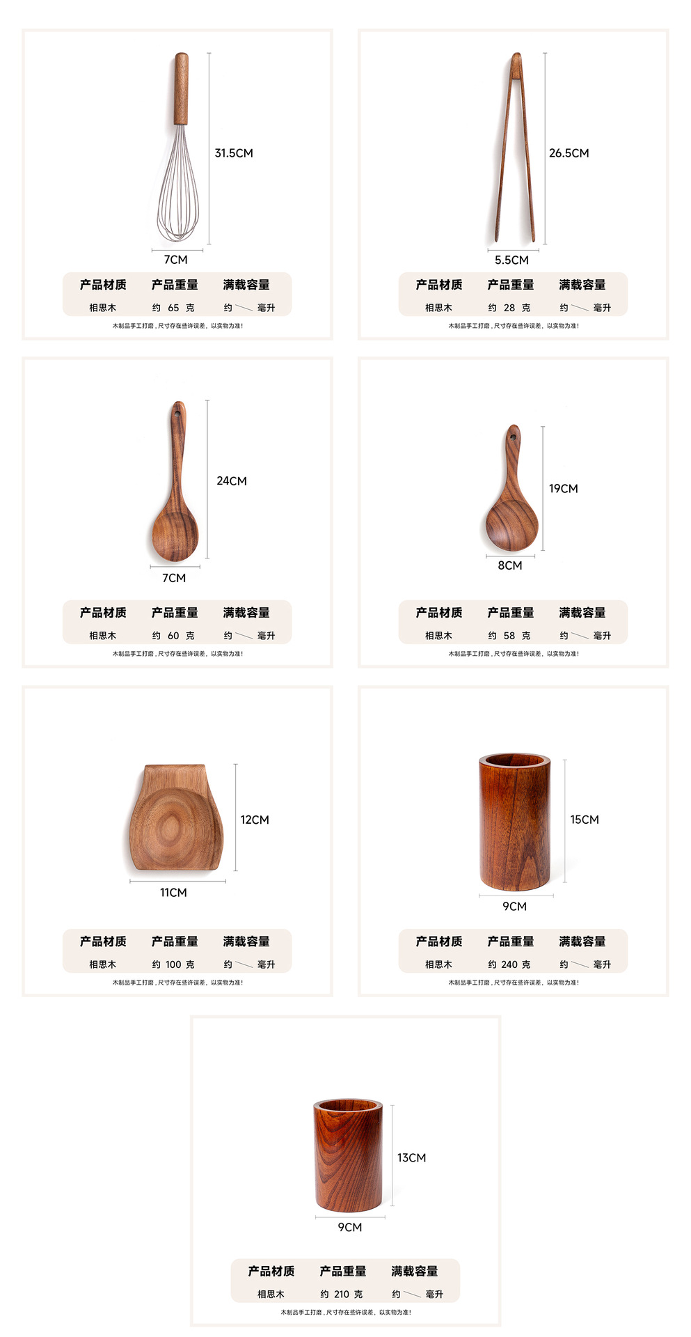 相思木烹饪勺铲套件多规格家用长柄锅铲不粘锅用大号汤勺柚木厨具
