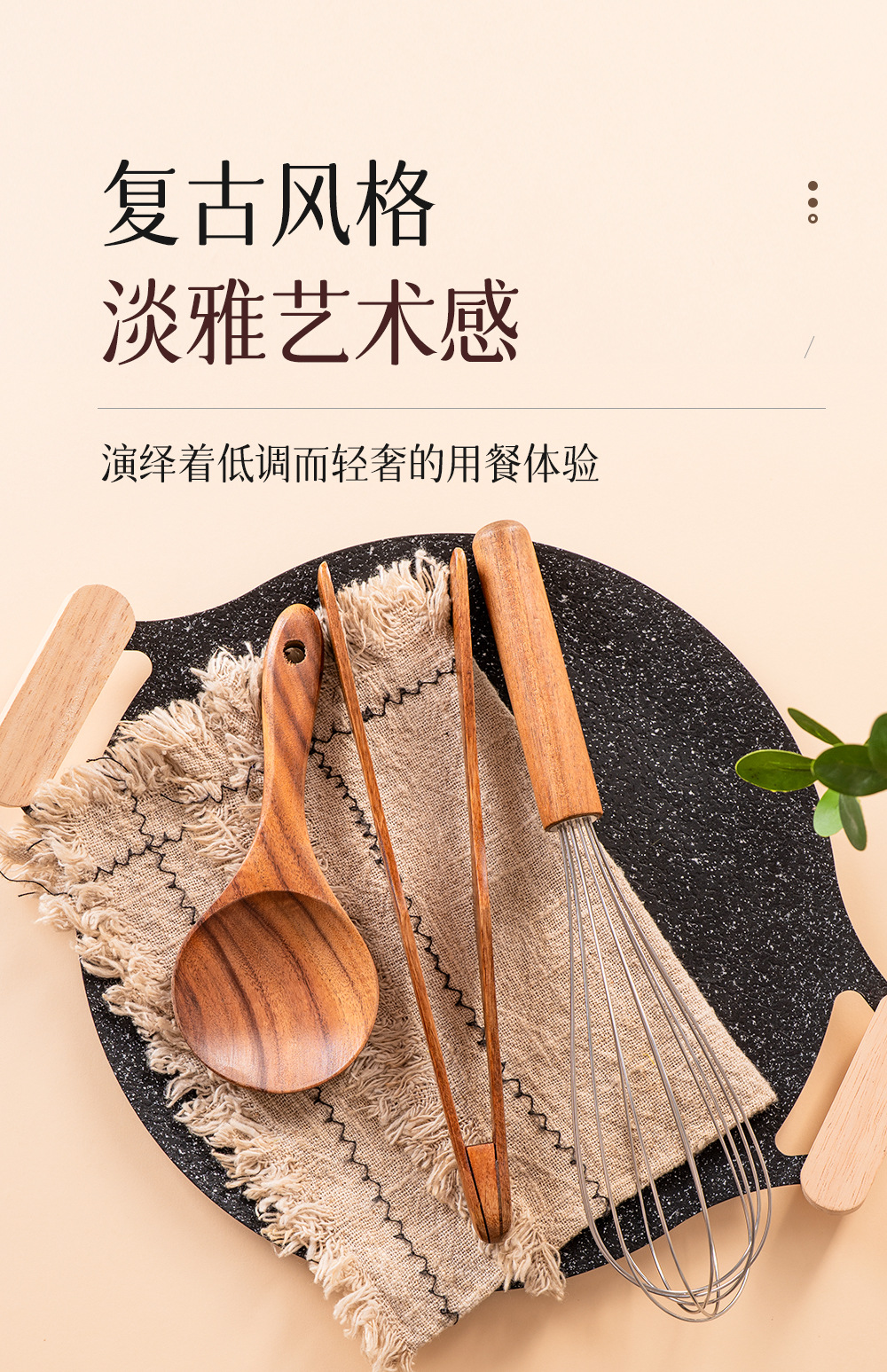 跨境烹饪厨具长柄锅铲汤勺套件满木沙拉勺亚马逊实木勺铲