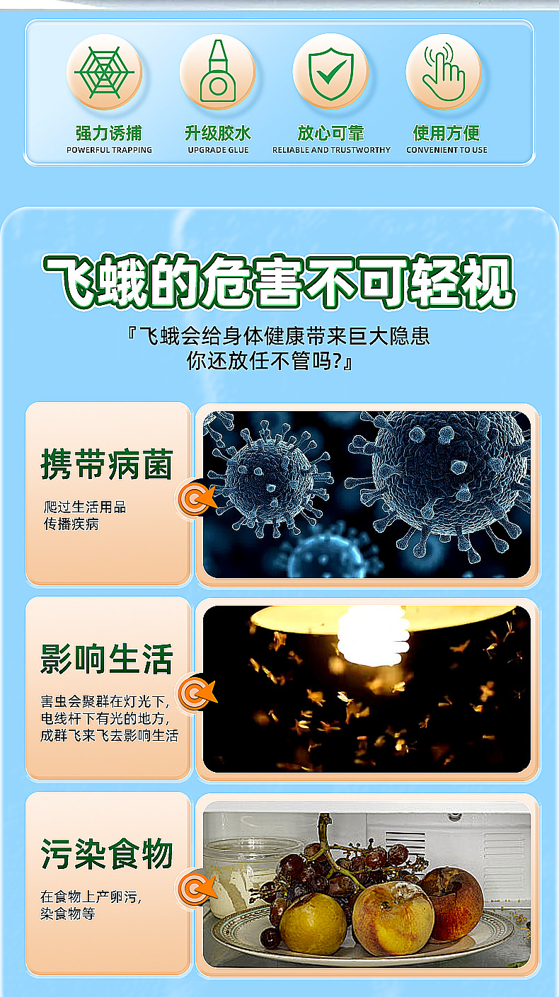 新殺虫剤、ハエキベイト、ハエ薬、ショウジョウバエトラップ、小飛虫粘着ハエゼリー、ショウジョウバエ薬品加工品