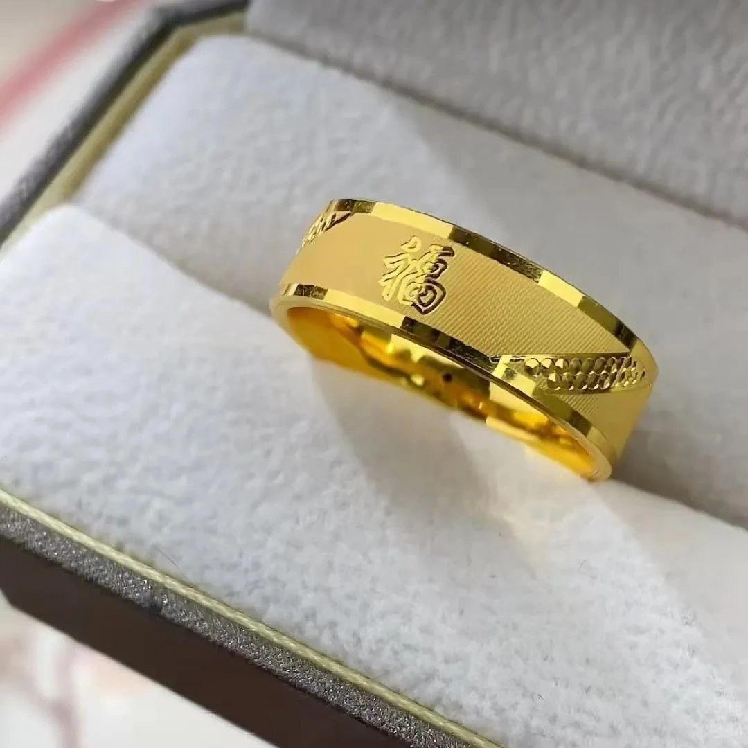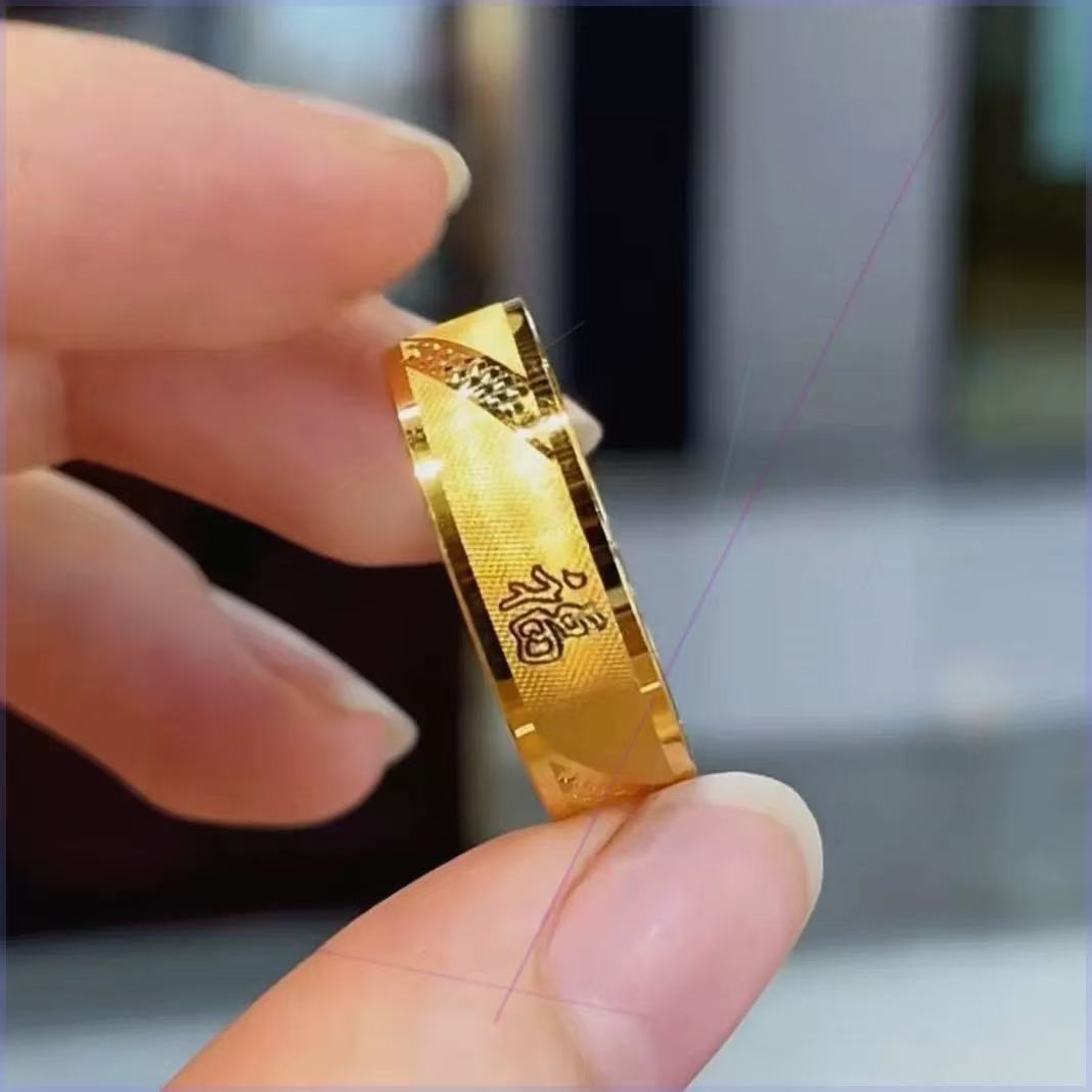 ベトナムサンドゴールドフォーチュンクローズドリング、男性用と女性用、プレーンリング、軽い高級リング、内外に同色の錫ゴールドリング、ライブブロードキャストモデル