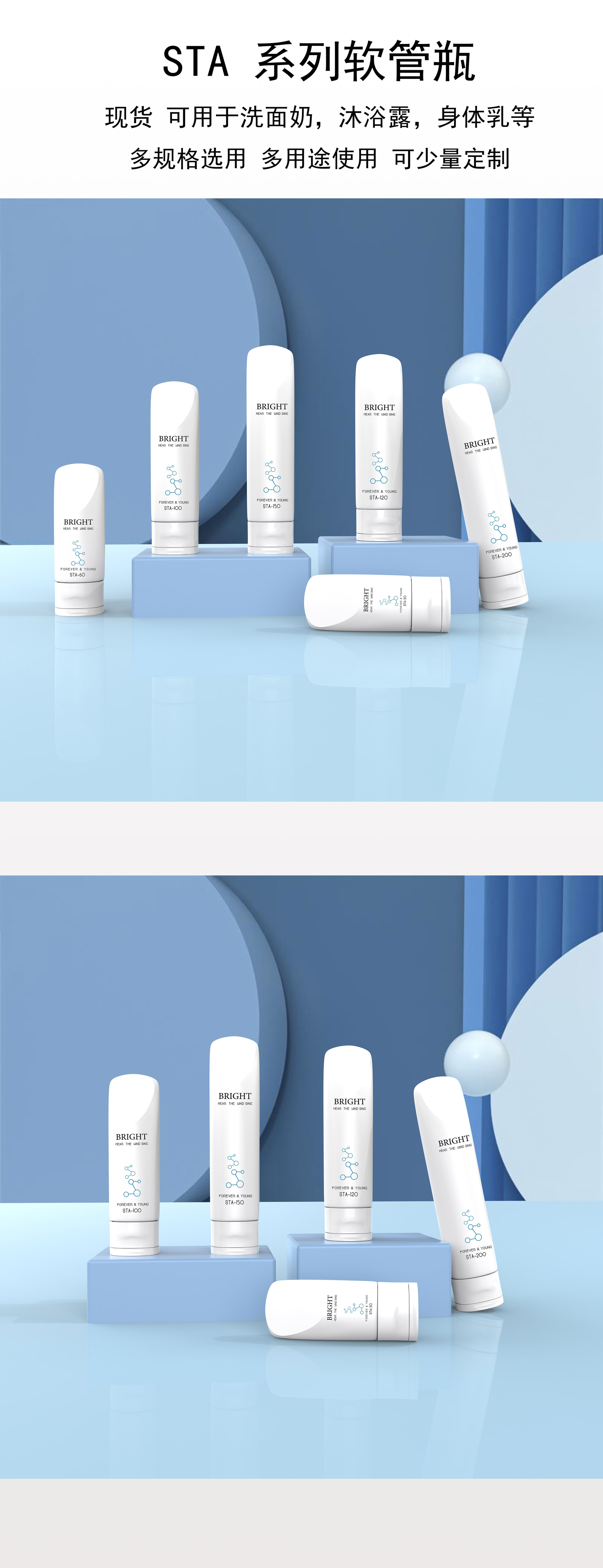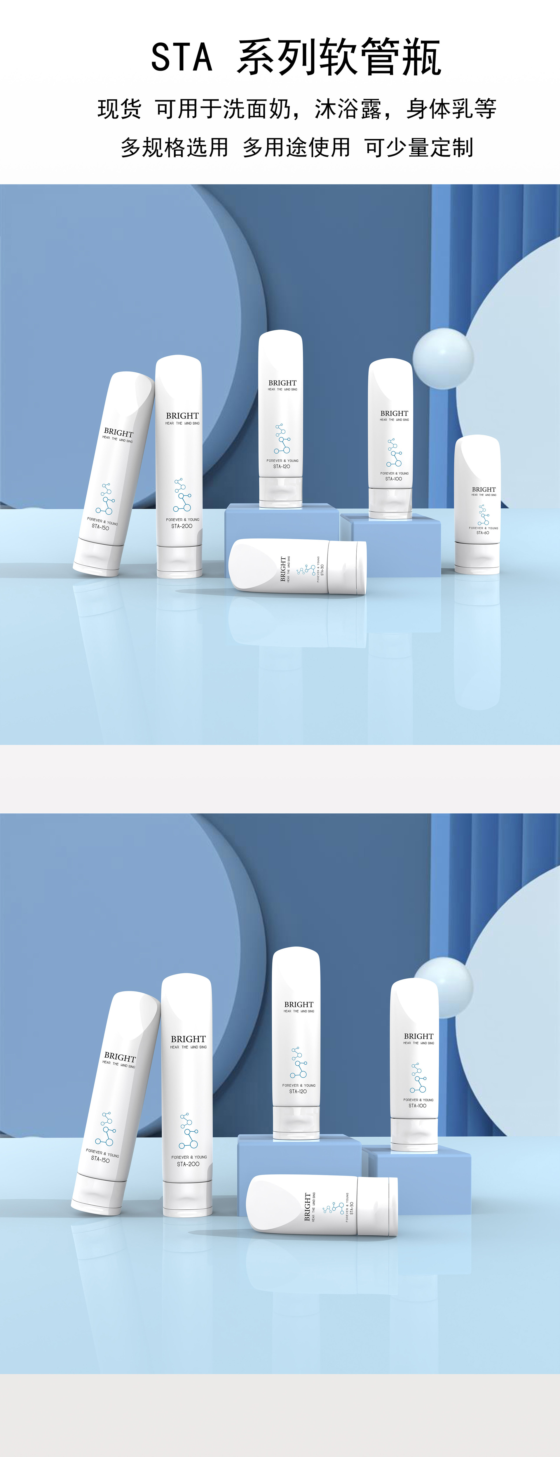 100ml功能性化妆品软管 三滚珠按摩头 美颈霜身体精华 护肤品包材