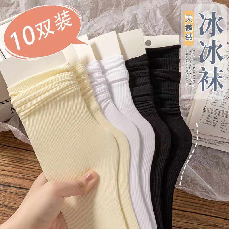 氷氷の靴下の女性の夏の薄いタイプの黒い白い中筒の靴下の山の靴下の夏の氷の糸の純色の靴下の中筒の靴下