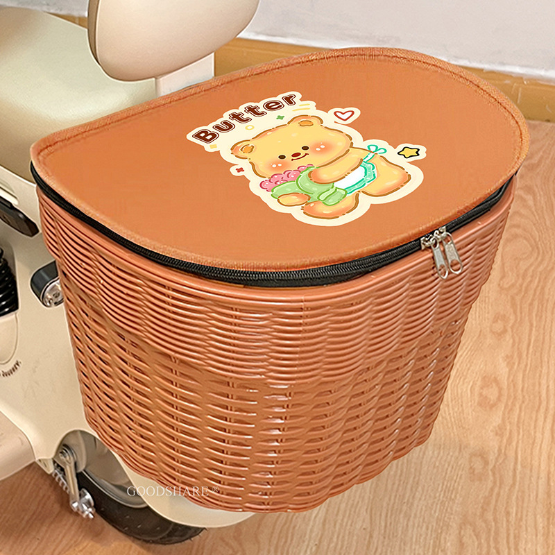 电动车藤编后置车筐带内胆包防水可爱卡通电瓶车摩托车靠背后尾箱
