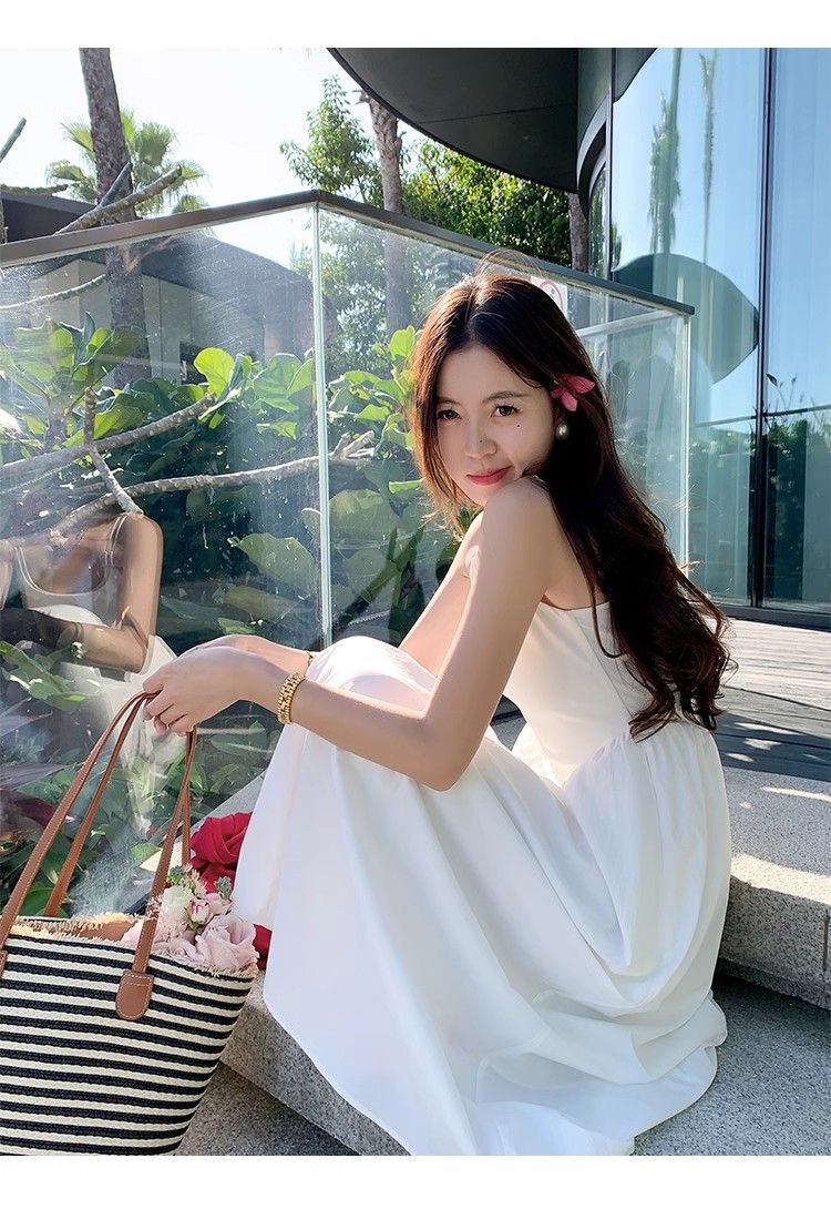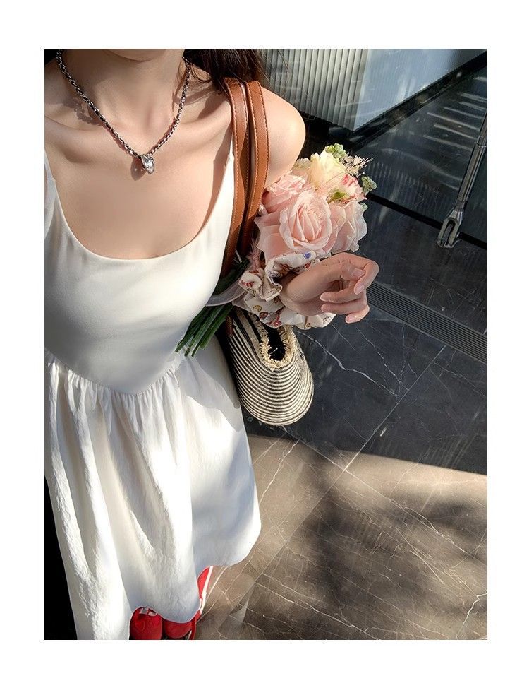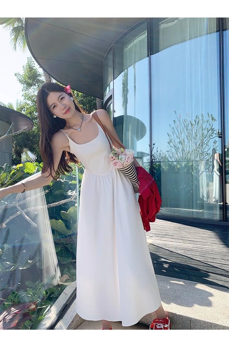 纯色吊带连衣裙子女夏季2025新款显瘦温柔法式初恋春装小白长裙子