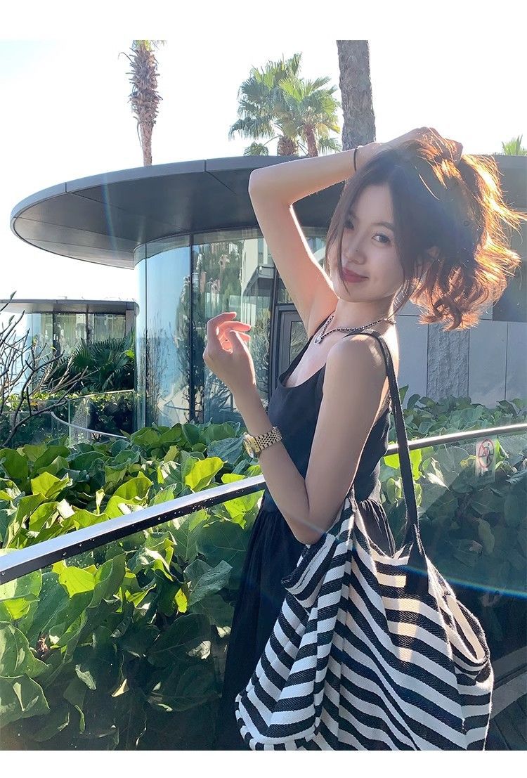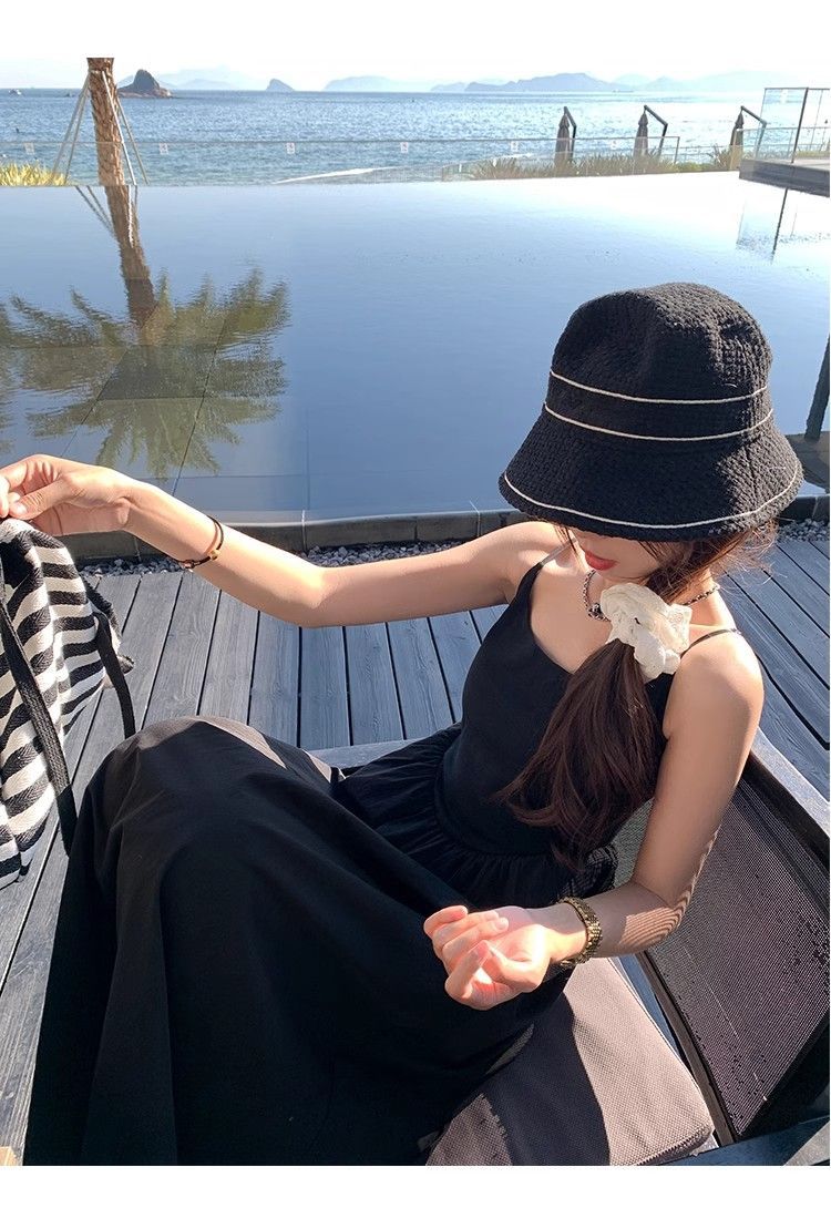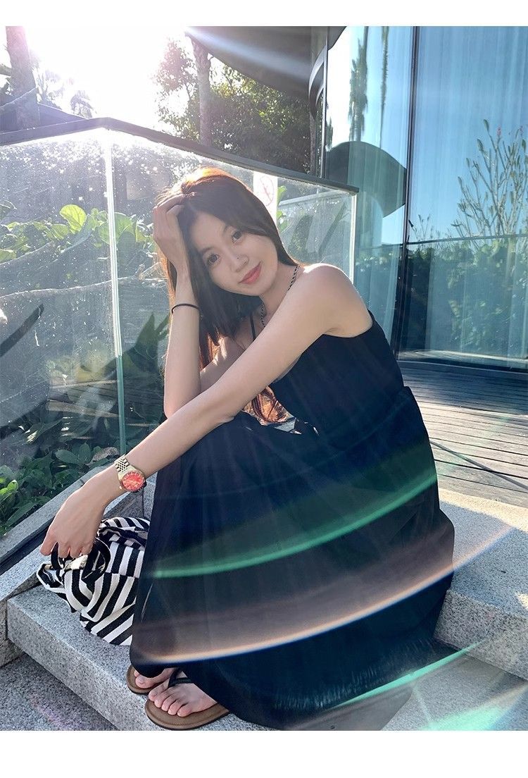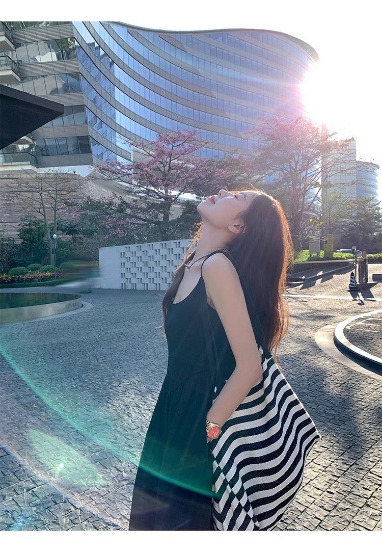 夏の海辺サスペンダードレスレディース春服2025新作フレンチドーパミンドレープAラインスリムロングスカート